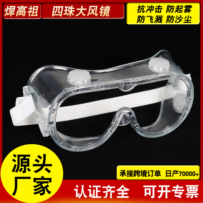 생산 및 도매 안티 스플래시 격리 아이 마스크 국경 간 산업 노동 보호 투명 보호 안경 안개 방지 4 구슬 고글스토어 가기