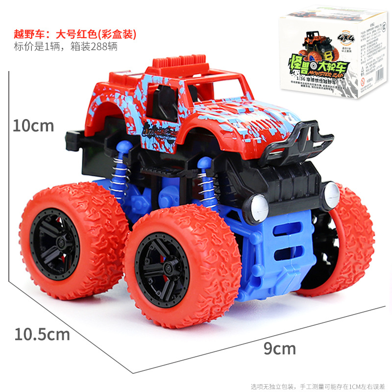 越野车小号和部分玩具车的实物和图片上的车盖图案形状、车轮颜色会因批次有些许不一样,不同颜色可能会因批次不同的轮子大小可能存在1cm左右的误差。介意的话请不要购买哦,不接受这等细微差异而退货退款哈!