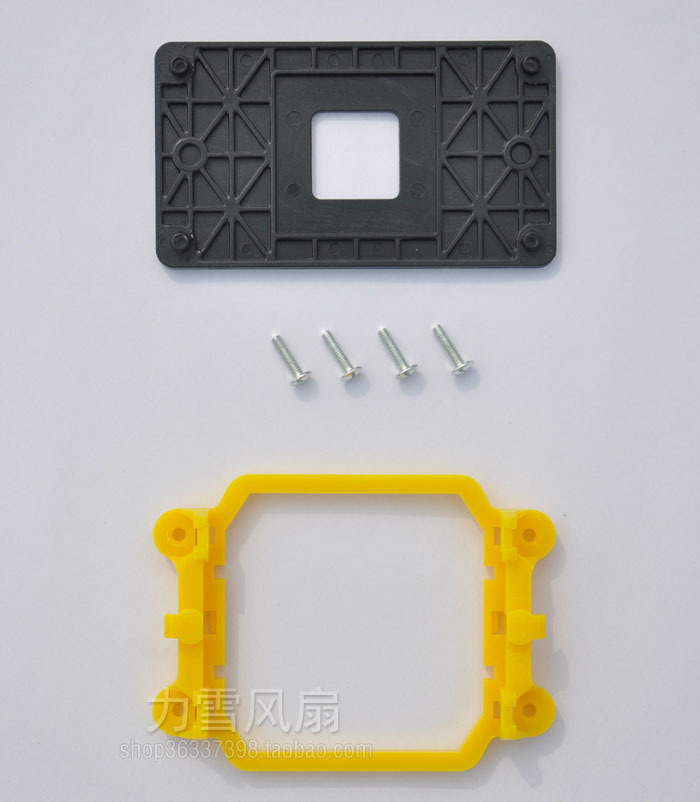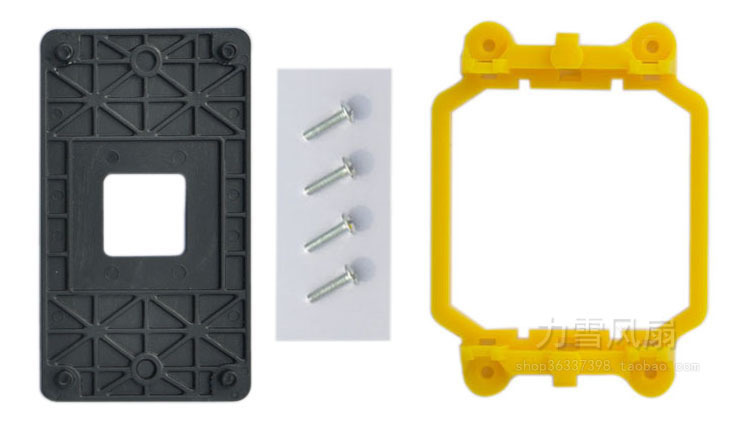 AMD支架由3部份组成黑色背板 四个螺丝 黄色支架