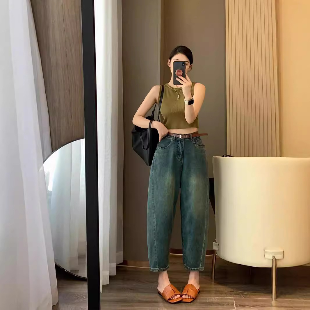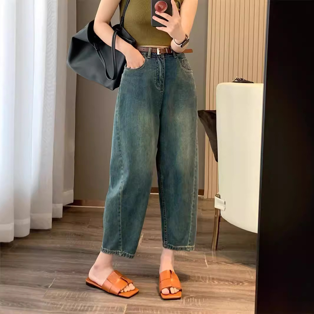 여성용 살짝 헐렁한 하렘 청바지, 유럽 스타일 여름옷 2026 신상 유럽 여성복, 패셔너블하고 세련된 와이드 팬츠 트렌드스토어 가기