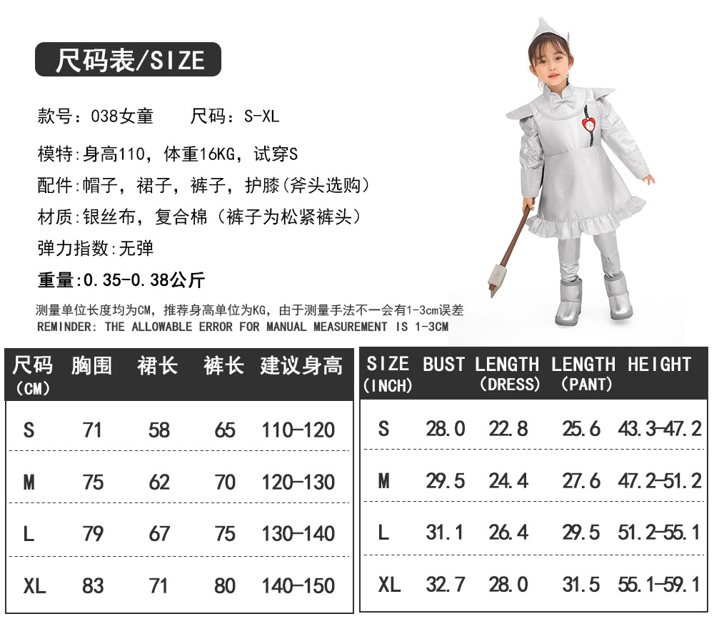 부모-자식 의상 오즈의 할로윈 마법사 양철 남자 코스프레 코스프레 유니폼 어린이날 의상스토어 가기