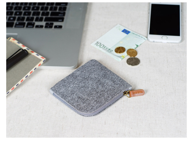 공장 도매 펠트 동전 지갑 짧은 지퍼 펠트 가방 보호 케이스 지퍼 l 세대 로고가있는 휴대 전화 가방