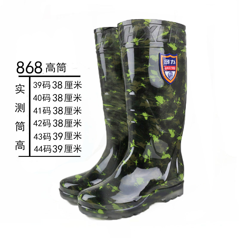 재고 공급 Huili 레인 부츠 868pvc 남자의 높은 물 신발 기모 노동 보호 낚시 패션 고무 부츠 도매