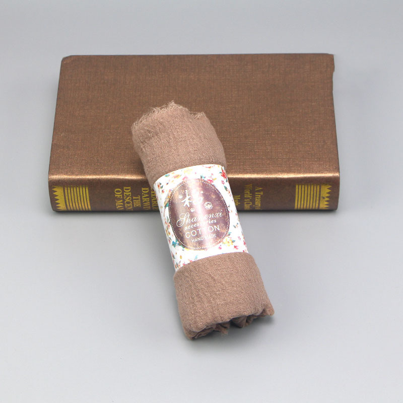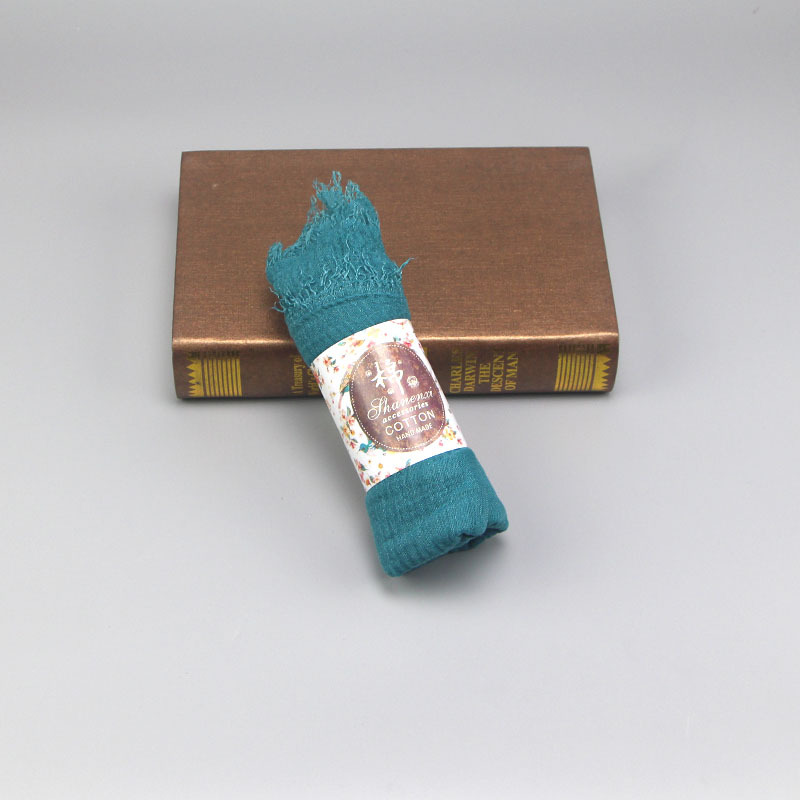 단색 면화와 린넨 여성용 머리 스카프 새로운 주름 단색 울 가장자리 스카프 도매 L090스토어 가기