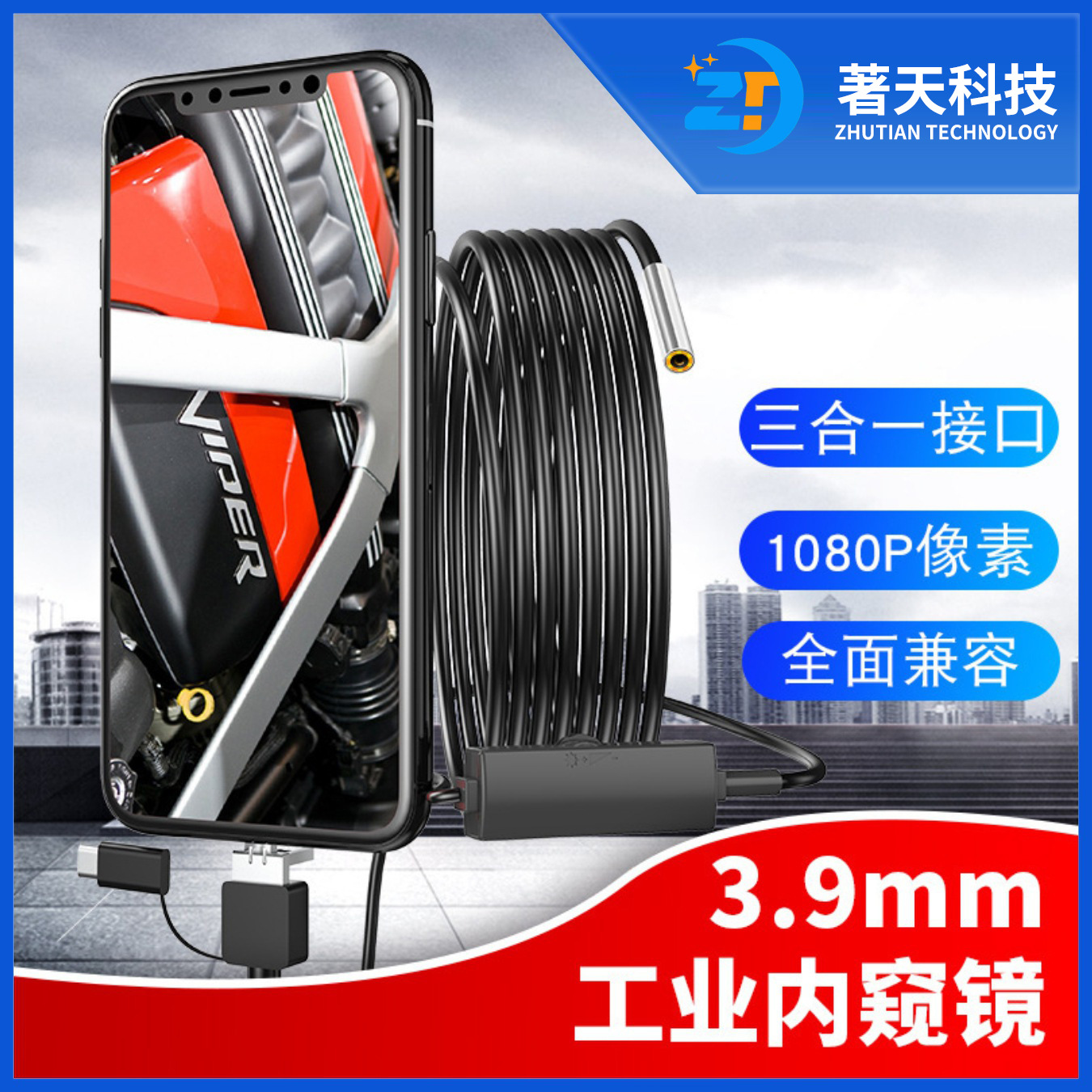 3.9mm 3-in-1 산업용 내시경, 파이프 및 자동차 검사용, typeC 안드로이드 휴대폰 카메라