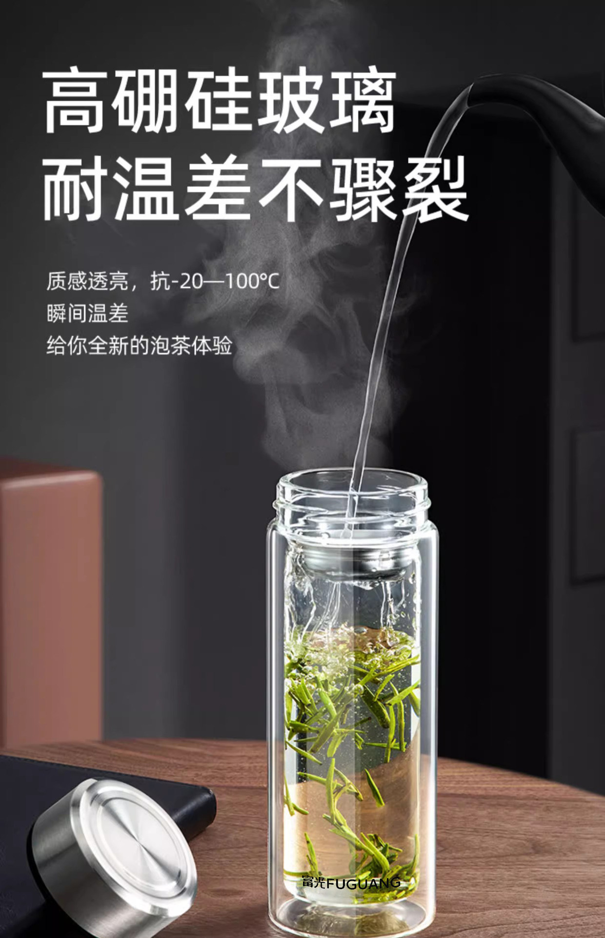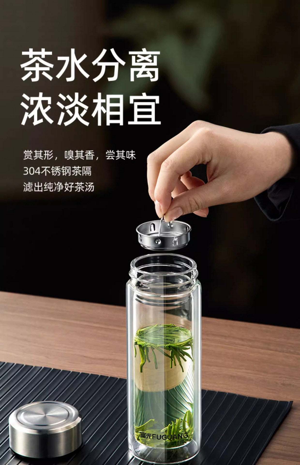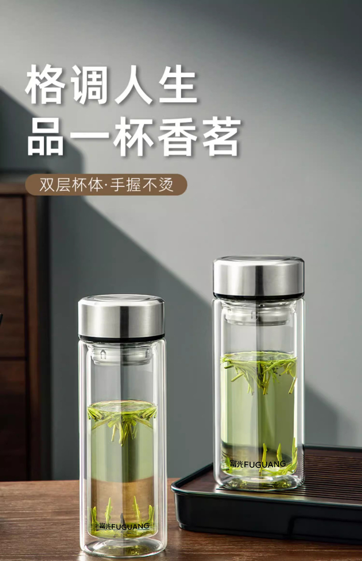 Fuguang X1804 얼 더블 레이어 유리 절연 버블 컵 사무실 컵 남성과 여성을위한 창조적 인 휴대용 인쇄 사용자 정의