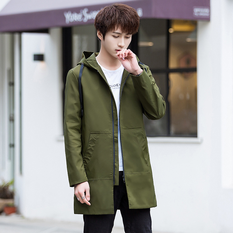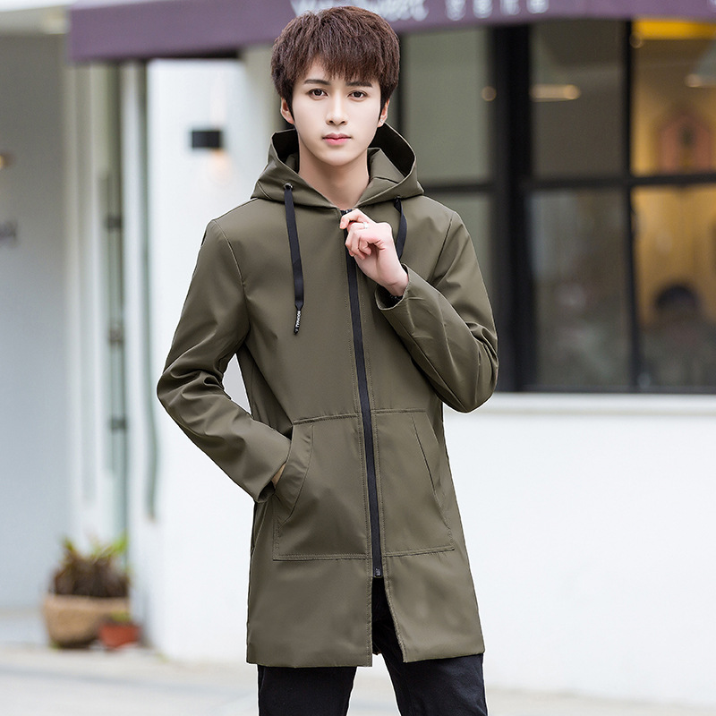 국경 봄, 가을 중간 길이 윈드 브레이커 남성용 새 후드 잘 생긴 재킷 유행 남성용 대형 솔리드 컬러 한국 스타일 재킷