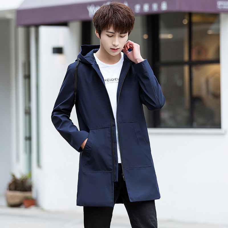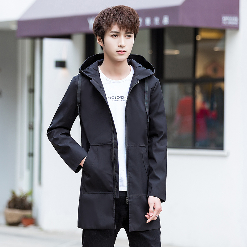 국경 봄, 가을 중간 길이 윈드 브레이커 남성용 새 후드 잘 생긴 재킷 유행 남성용 대형 솔리드 컬러 한국 스타일 재킷스토어 가기