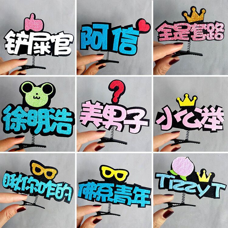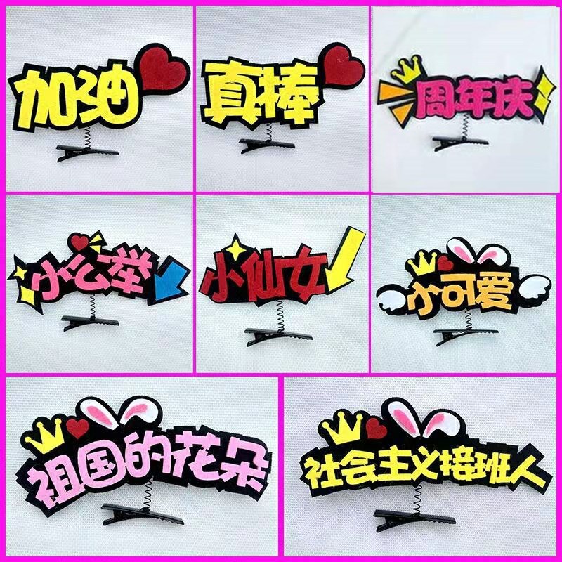 개성 넘치는 DIY 펠트 헤어 액세서리, 재미있는 머리 장식, 재미있는 글귀가 새겨진 머리핀, 생방송실 연예인 응원 머리핀 장식
