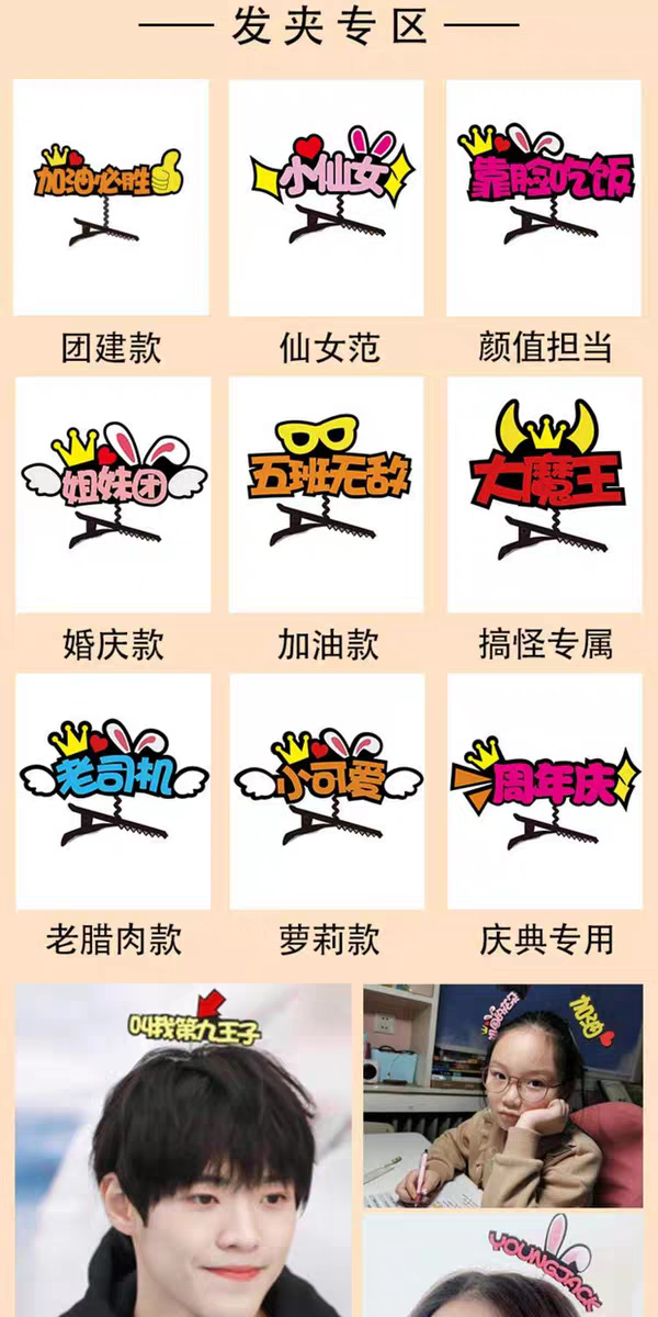 개성 넘치는 DIY 펠트 헤어 액세서리, 재미있는 머리 장식, 재미있는 글귀가 새겨진 머리핀, 생방송실 연예인 응원 머리핀 장식스토어 가기