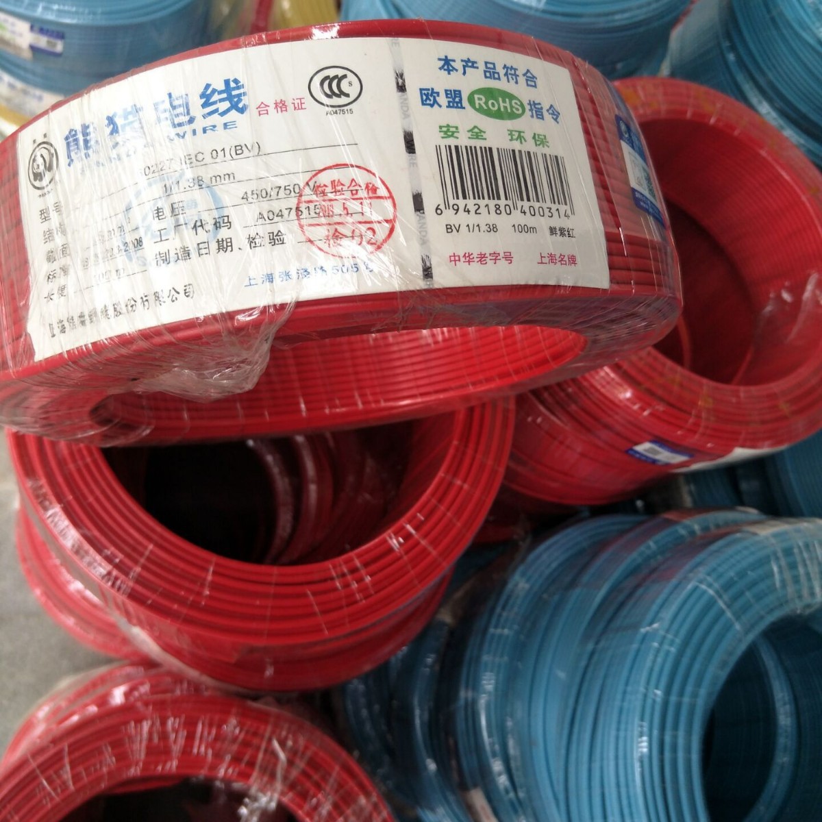 정품 상하이 팬더 전선 BV1.5 단심 백색, 적색 및 다양한 색상의 BV2.5 경질 전선, 주택 개조 공사용