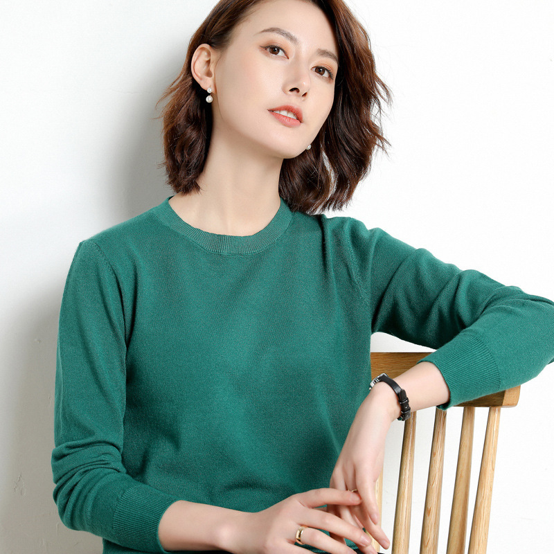 2025 가을 겨울 신상 한국 스타일 여성 스웨터 기본 풀오버 얇은 긴팔 다용도 라운드넥 니트 중간 길이스토어 가기