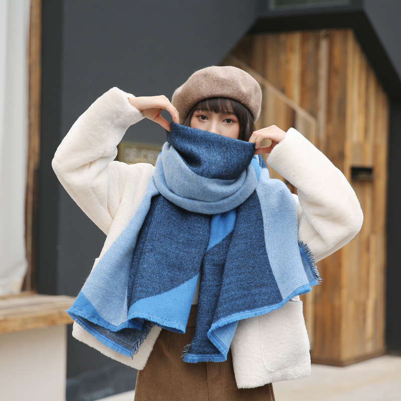 블루 반원 기하학적 컬러 매칭 학생 캐시미어 두꺼운 따뜻한 슈퍼 스카프 가을과 겨울 여성용 대형 목도리 이중 목적스토어 가기
