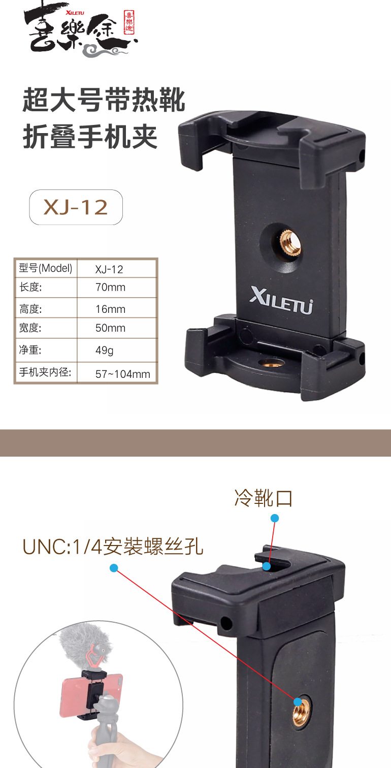Xiletu 대형 카메라 대형 휴대 전화 클립 삼각대 헤드 어댑터 시트 유니버설 라이브 방송 브래킷 홀더