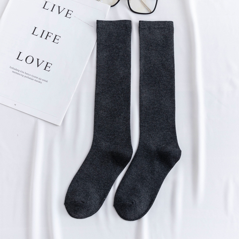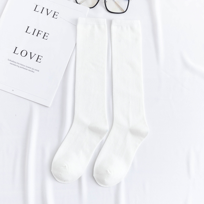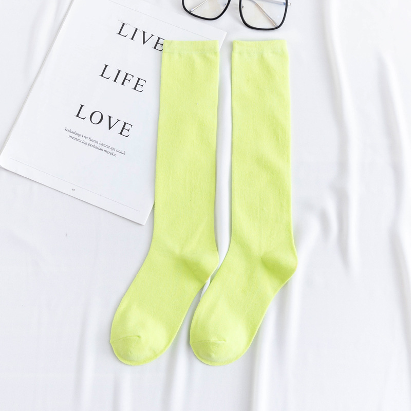 한국 스타일 캔디 컬러 단색 다용도 종아리 양말 심플하고 세련된 중간 길이 일본 스타일 무릎 양말 개성 넘치는 트렌디 여성용 면 양말