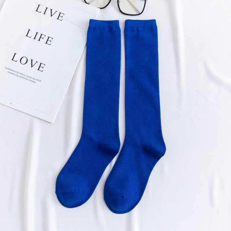 한국 스타일 캔디 컬러 단색 다용도 종아리 양말 심플하고 세련된 중간 길이 일본 스타일 무릎 양말 개성 넘치는 트렌디 여성용 면 양말스토어 가기