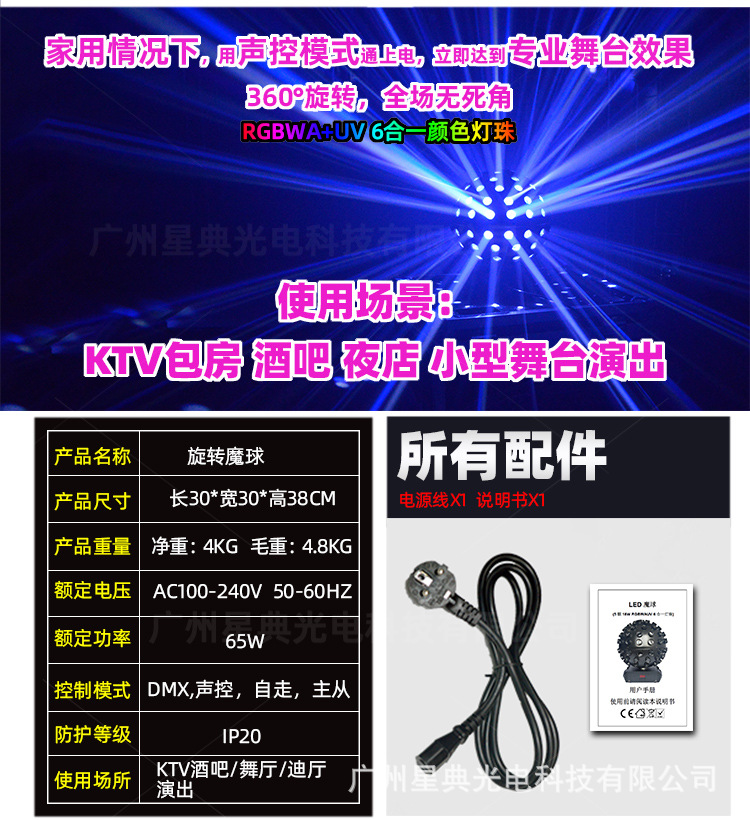 다채로운 led 음성 제어 회전 매직 볼 무대 램프 KTV 바 개인실 대형 홈 매직 볼 효과 램프