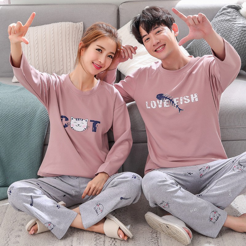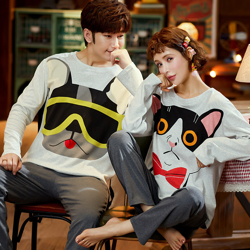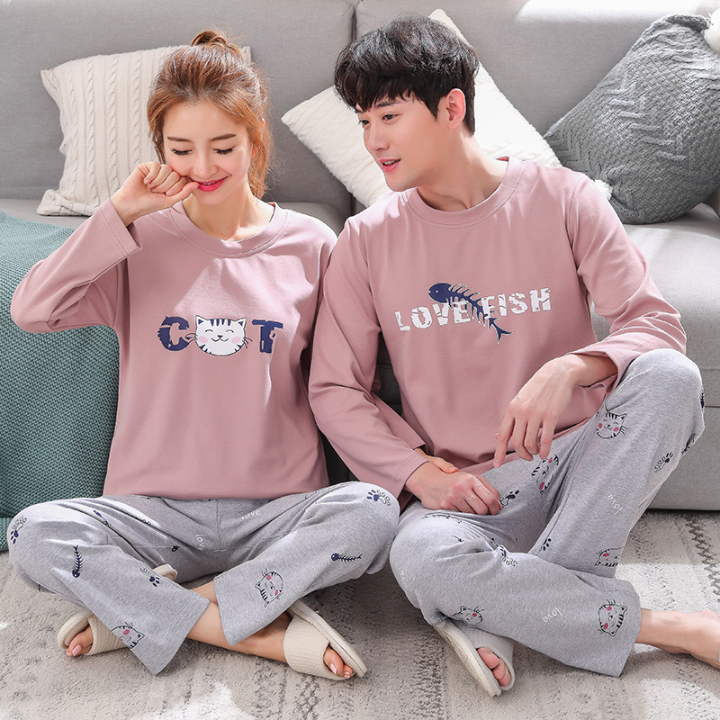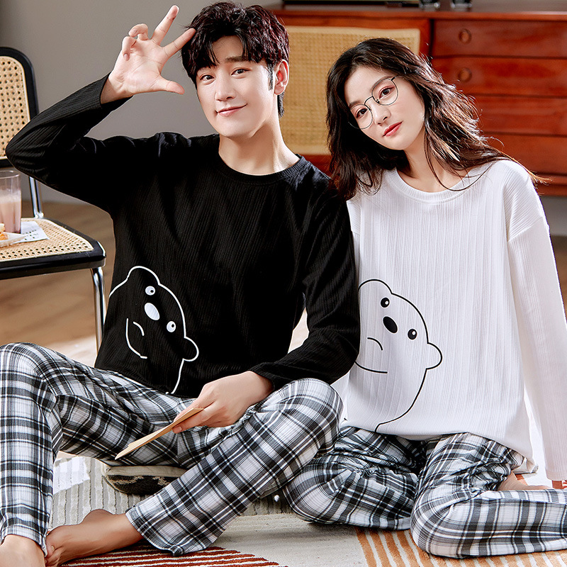 2025 새로운 커플 잠옷 여성 가을, 겨울 면화 긴팔 한국 스타일 귀여운 남성 홈웨어 인터넷 연예인 핫 스타일스토어 가기