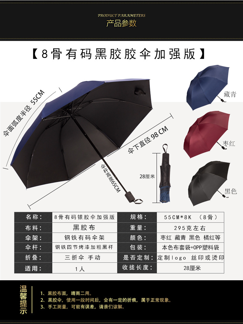 8 본 블랙 고무 우산 태양 우산 태양 보호 양산 우산 광고 우산 로고 UV 보호 여성용 이중 사용 맑은 비 휴대용스토어 가기