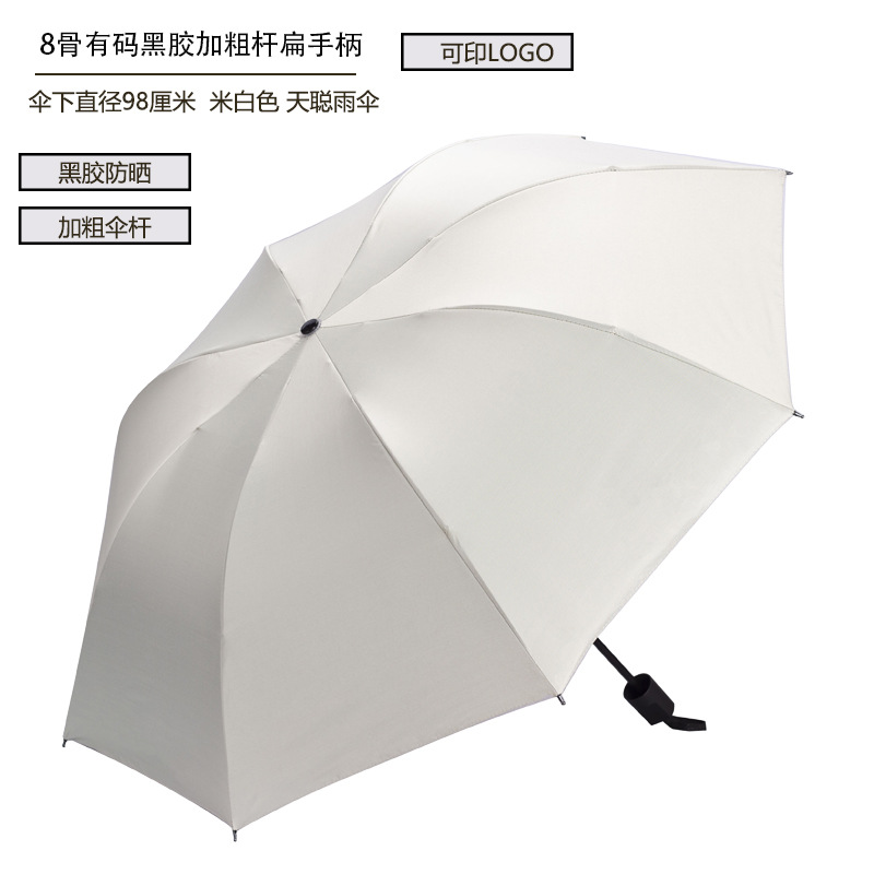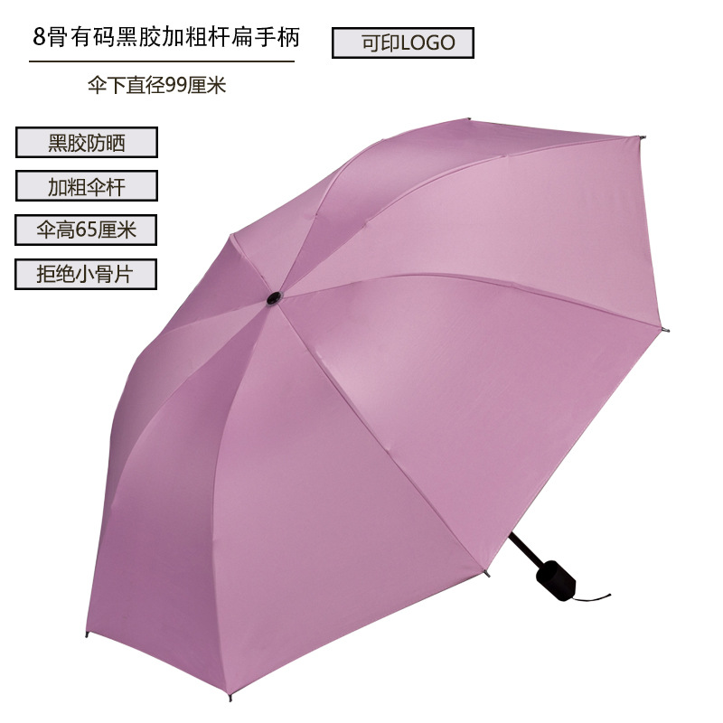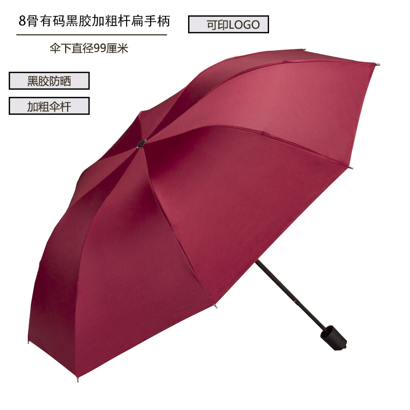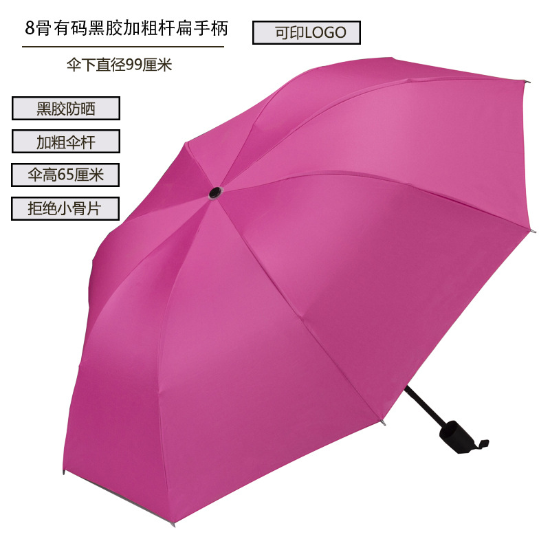 8 본 블랙 고무 우산 태양 우산 태양 보호 양산 우산 광고 우산 로고 UV 보호 여성용 이중 사용 맑은 비 휴대용