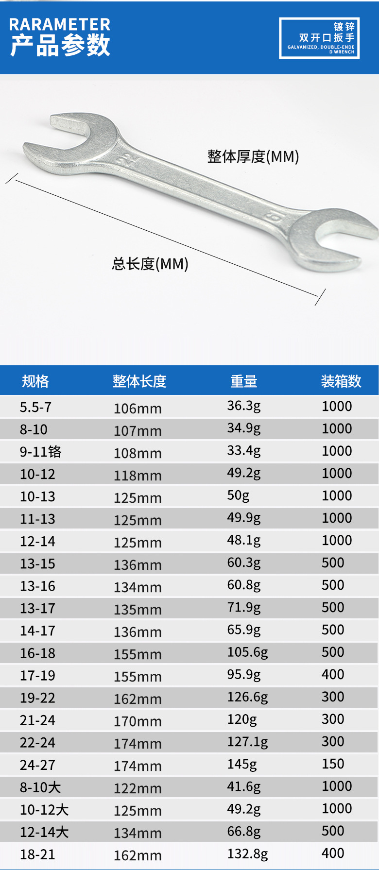 • 아연 도금 오픈 엔드 렌치 * 16-18