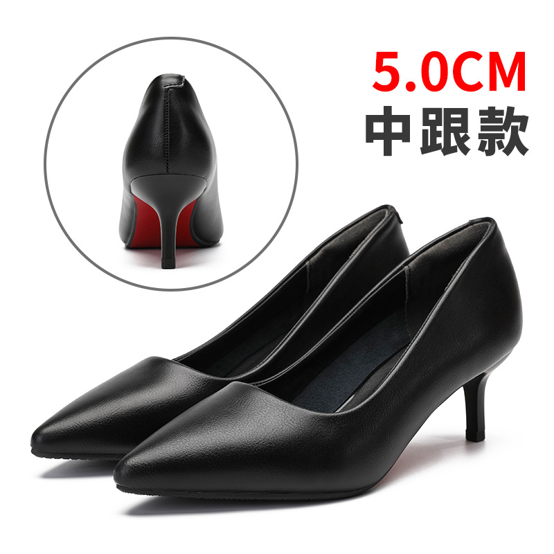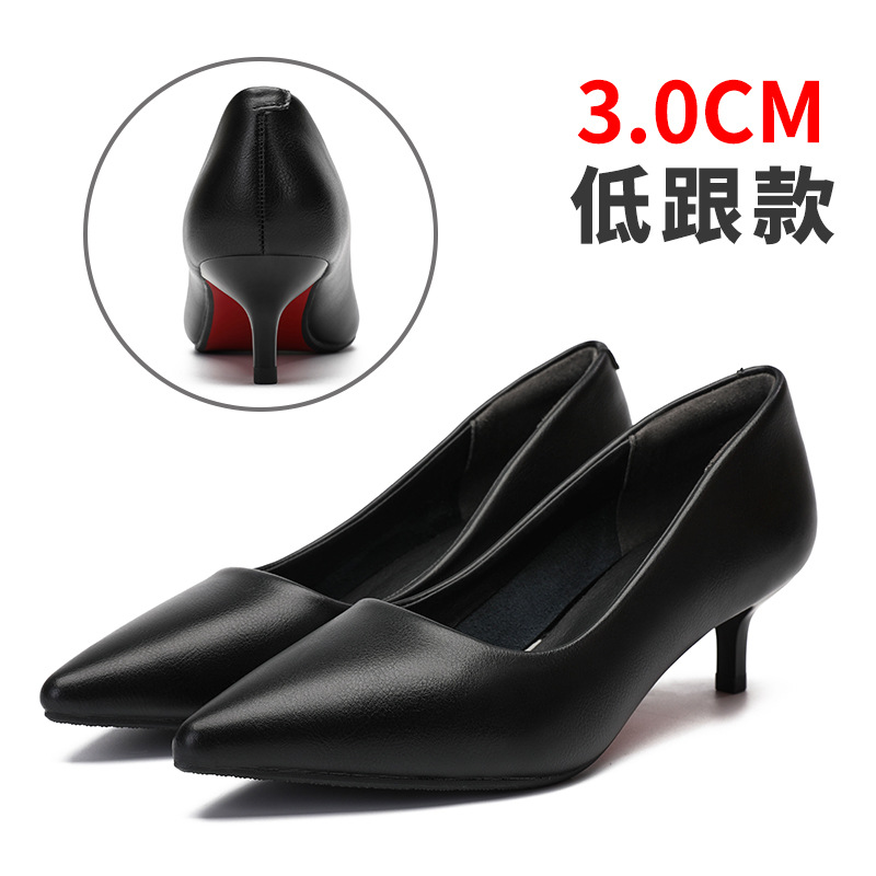 여성용 정품 가죽 하이힐, 스틸레토 힐, 2024 새로운 스타일의 뾰족한 발가락, 얕은 중간 굽 싱글 슈즈, 가을 겨울 검은색 가죽 신발, 작은 사이즈 여성 신발스토어 가기