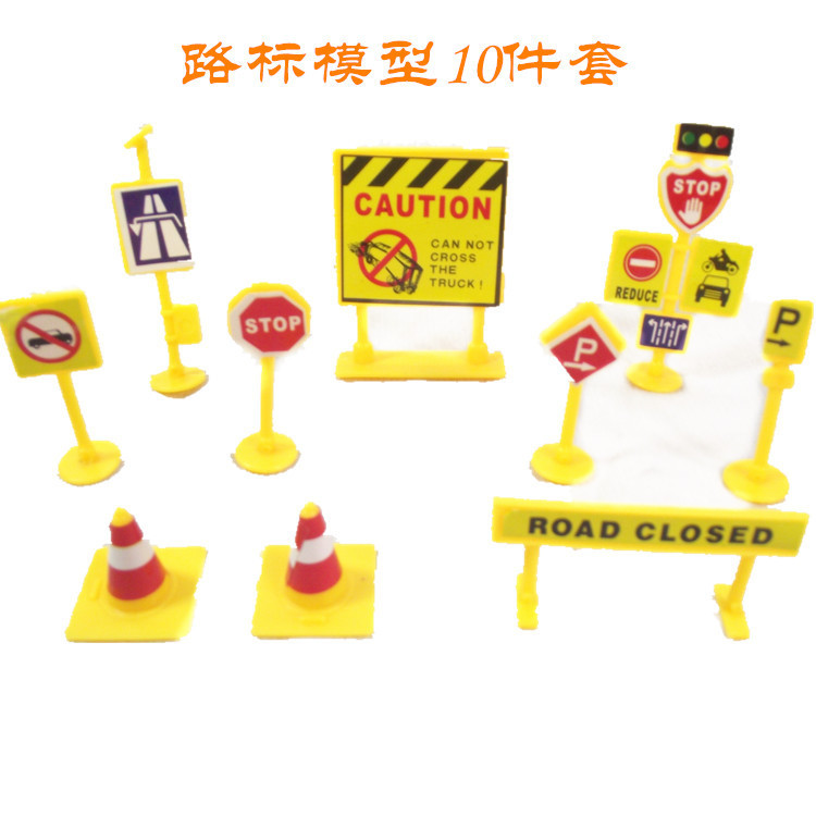 도시 교통 도로 표지판의 가방을 세트 10 조각 모델 엔지니어링로드 블록 표지판 도로 표지판 시뮬레이션 마이크로 조경 모델링