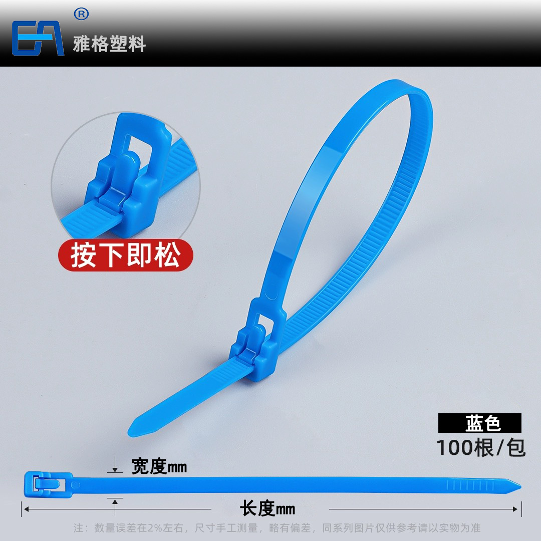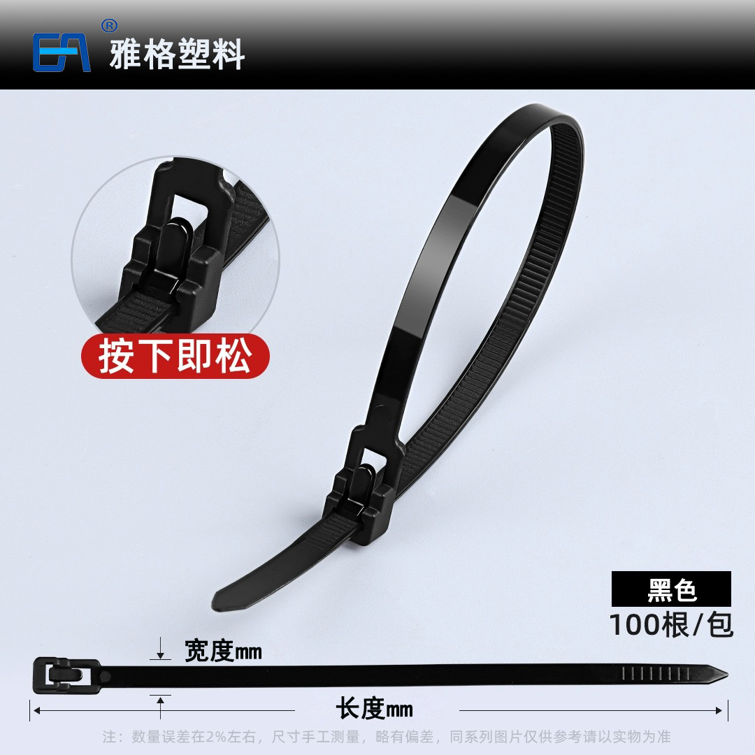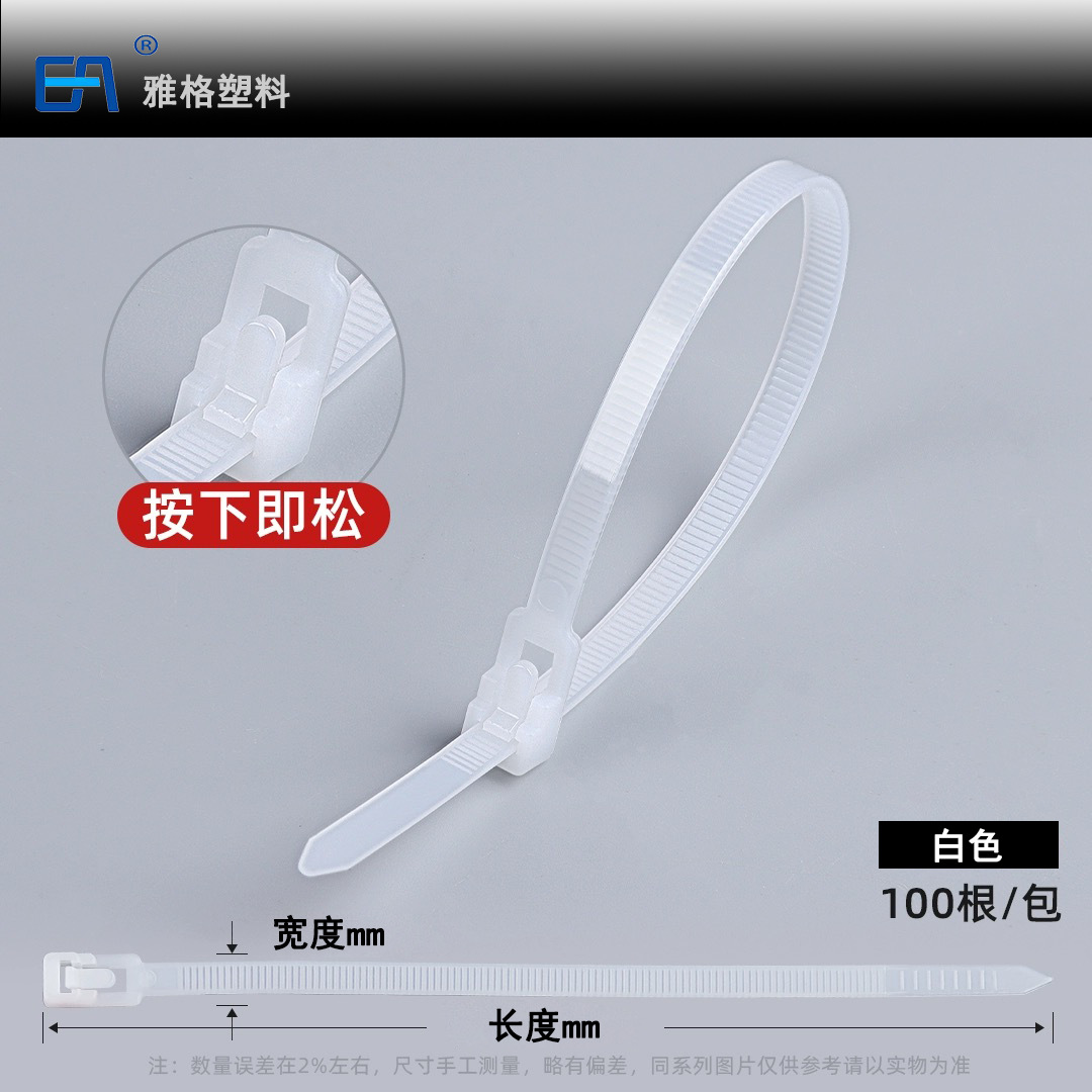 재사용 가능한 조절식 나일론 케이블 타이, 흑백 및 컬러 플라스틱 버클 고정, 제조업체 도매