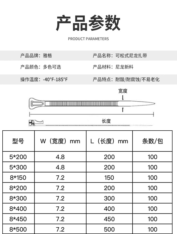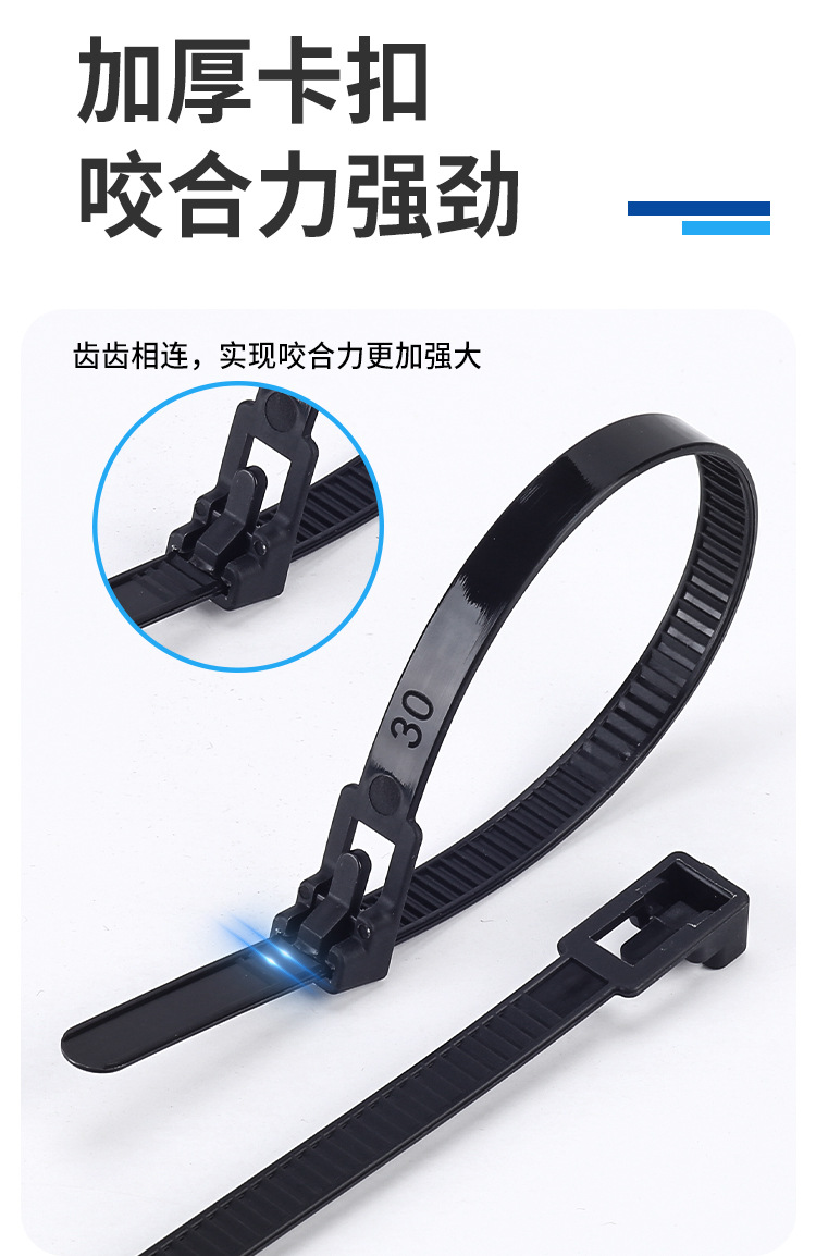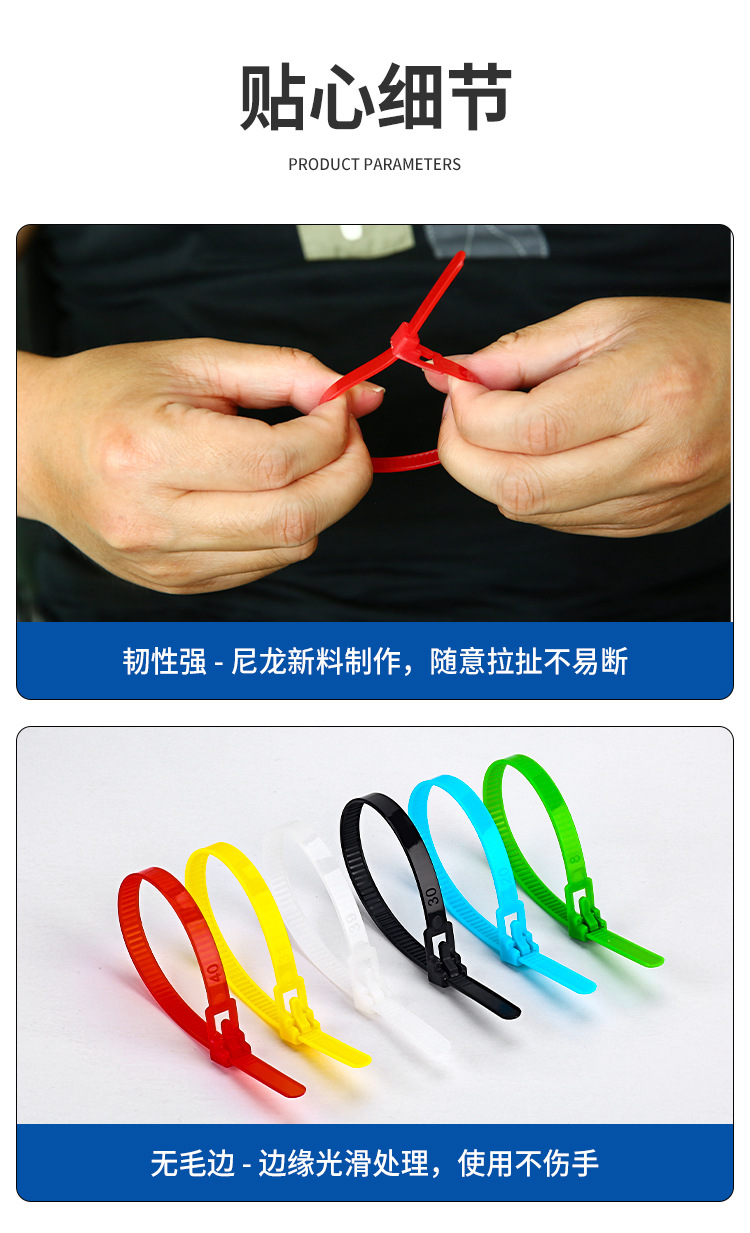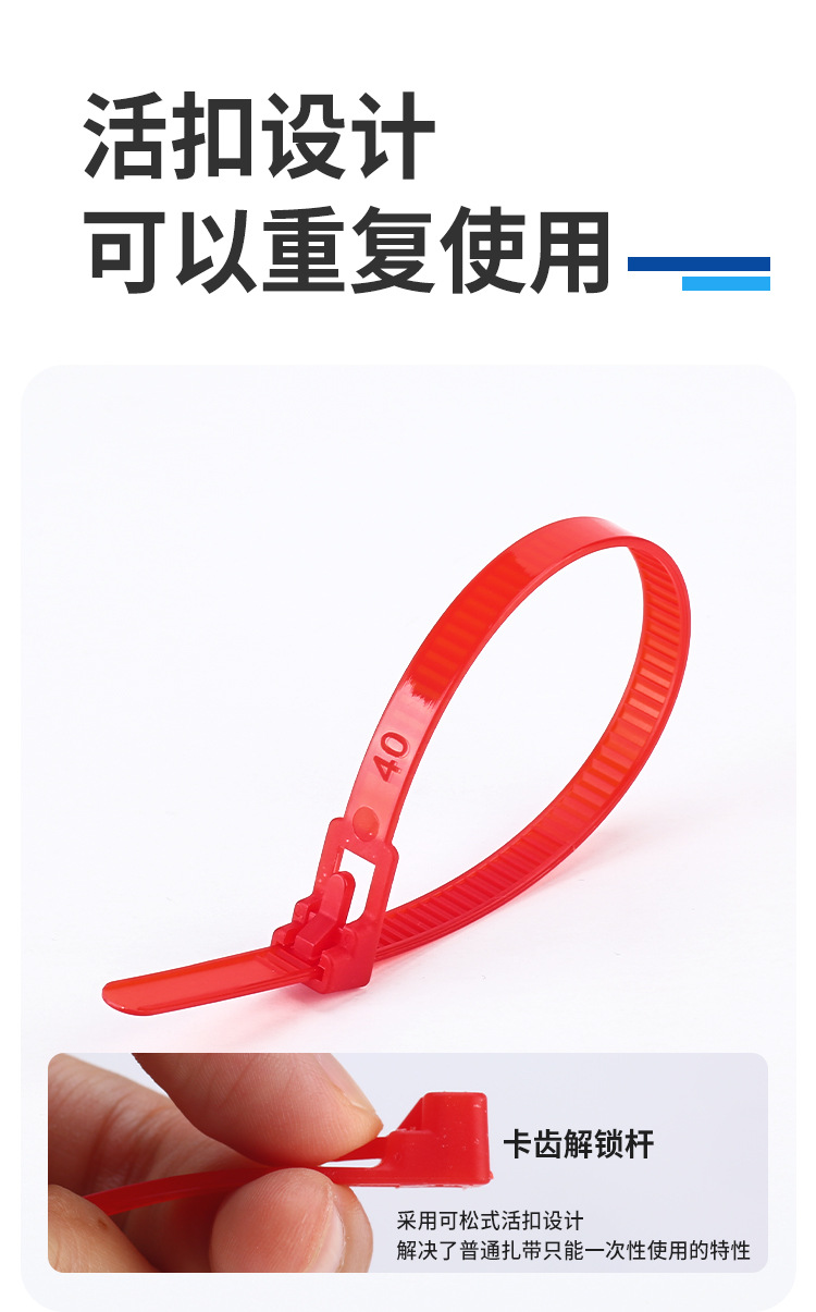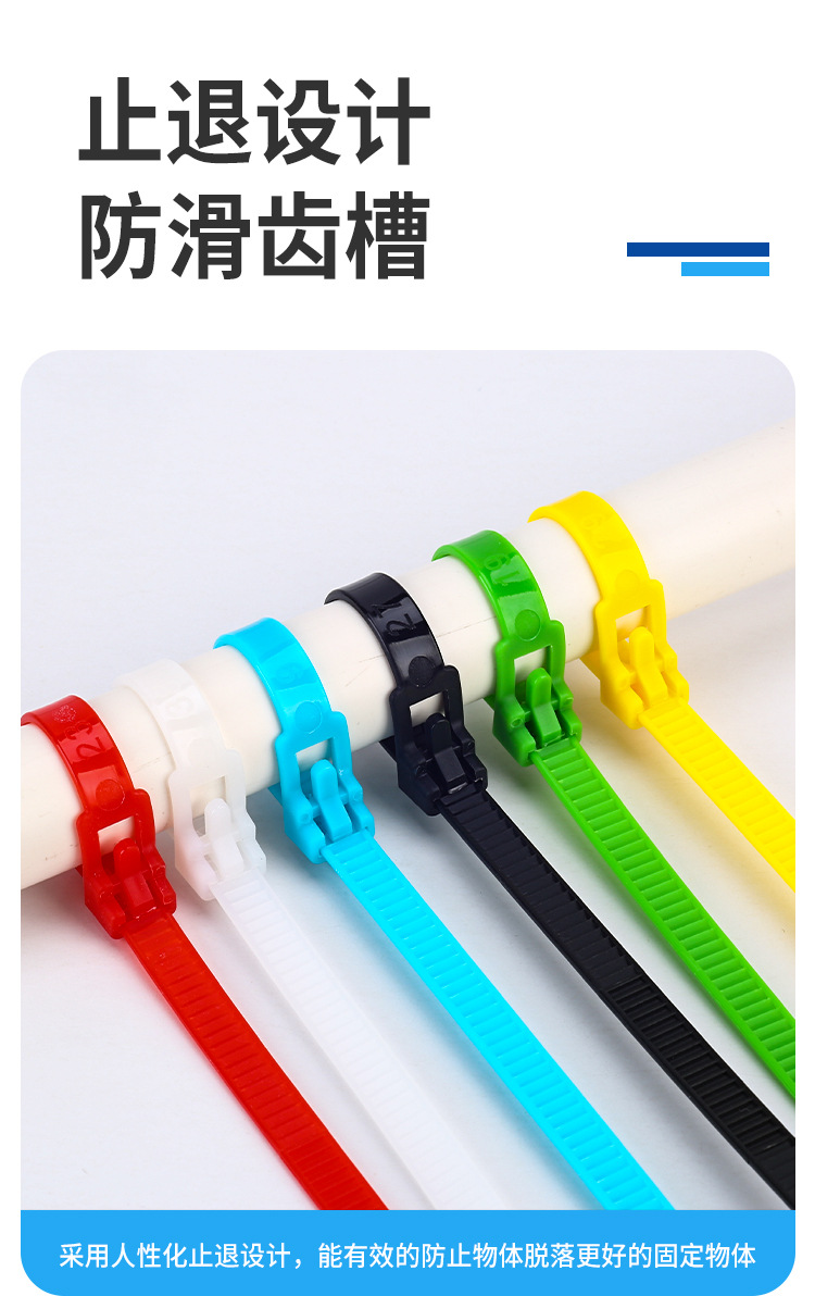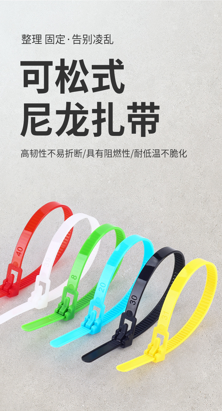 재사용 가능한 조절식 나일론 케이블 타이, 흑백 및 컬러 플라스틱 버클 고정, 제조업체 도매스토어 가기