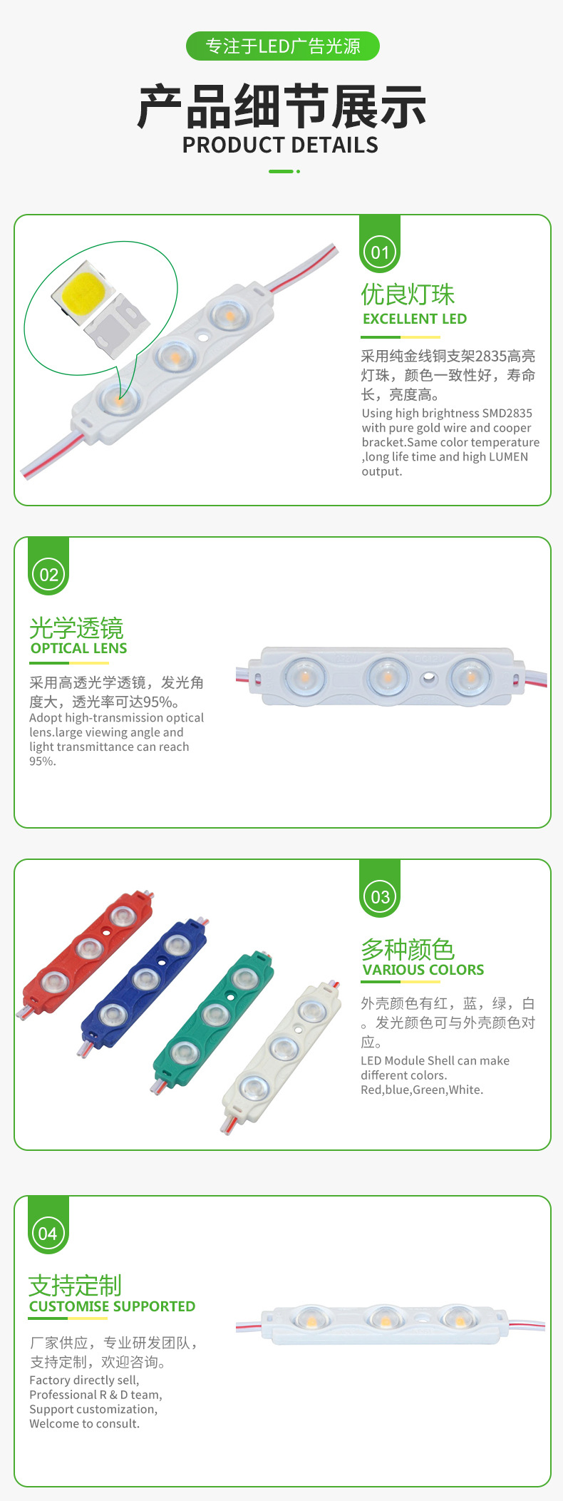 심천 공장 공급 3 조명 2835 LED 주입 모듈 12v 0.72W 주문에 주문 수락