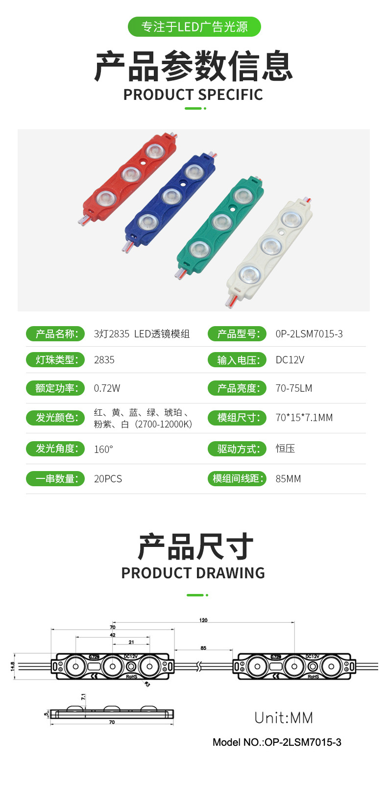 심천 공장 공급 3 조명 2835 LED 주입 모듈 12v 0.72W 주문에 주문 수락스토어 가기