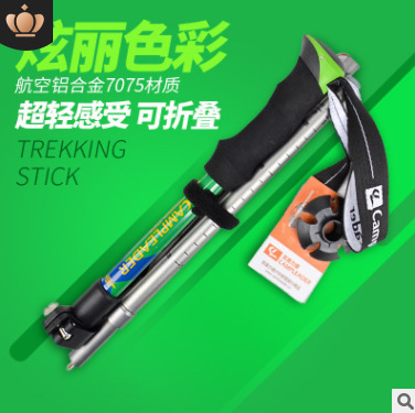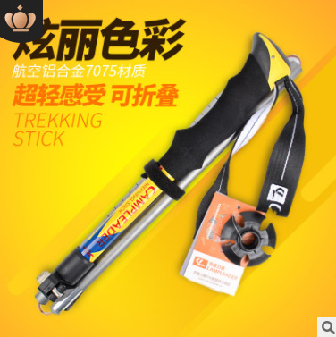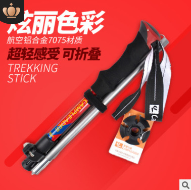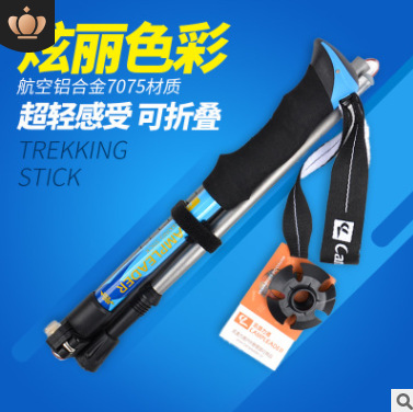 외부 잠금 슈퍼 라이트 야외 하이킹 스틱 7075 접이식 타입 5 섹션 접이식 스틱 알루미늄 합금 목발 워킹 스틱