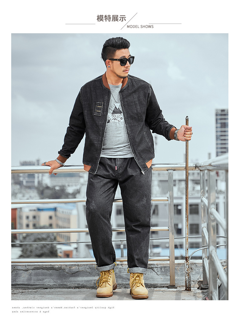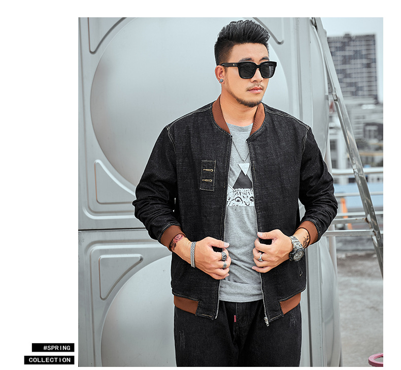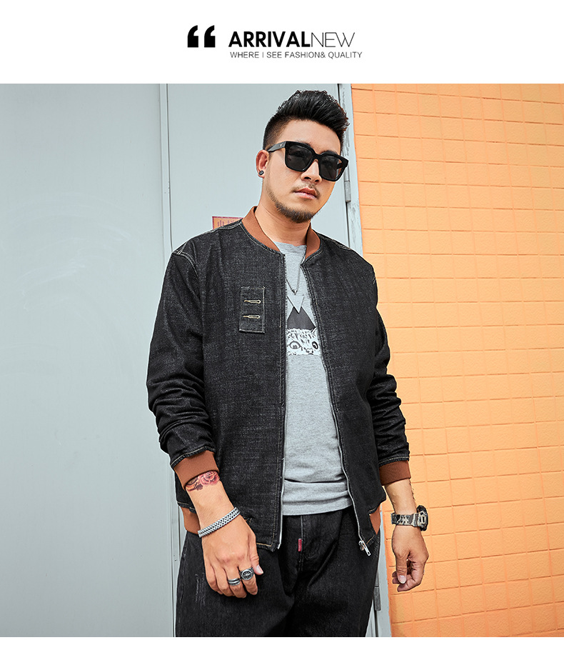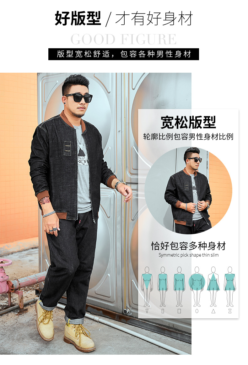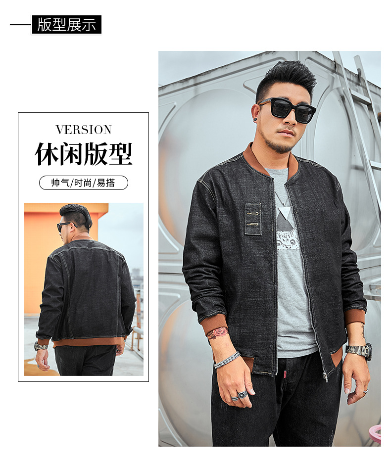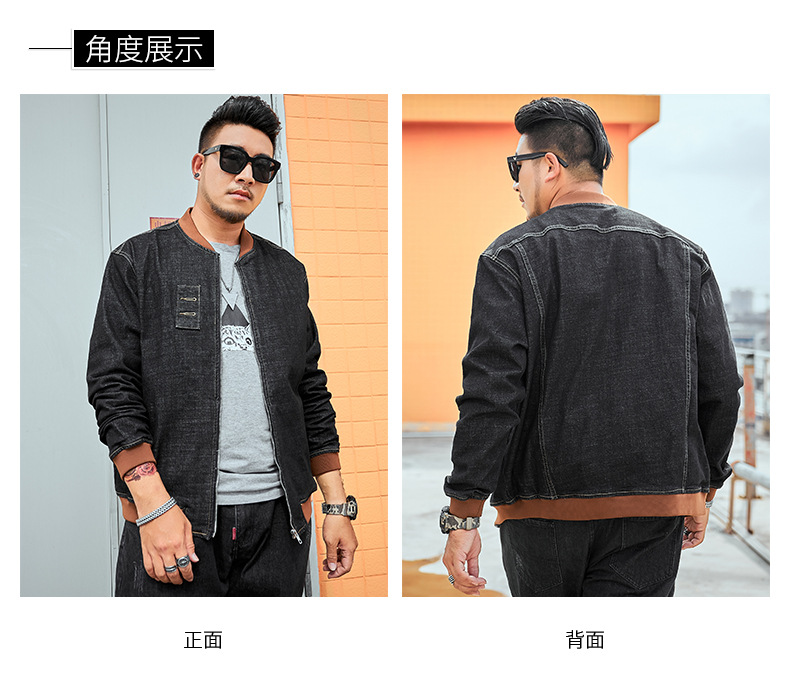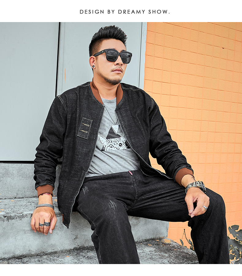 플러스 사이즈 남자의 느슨한 데님 재킷 플러스 무게 플러스 스트레치 뚱뚱한 야구 세트 한국 스타일 뚱뚱한 재킷 유행 최고스토어 가기