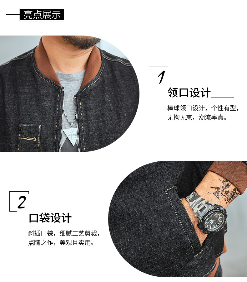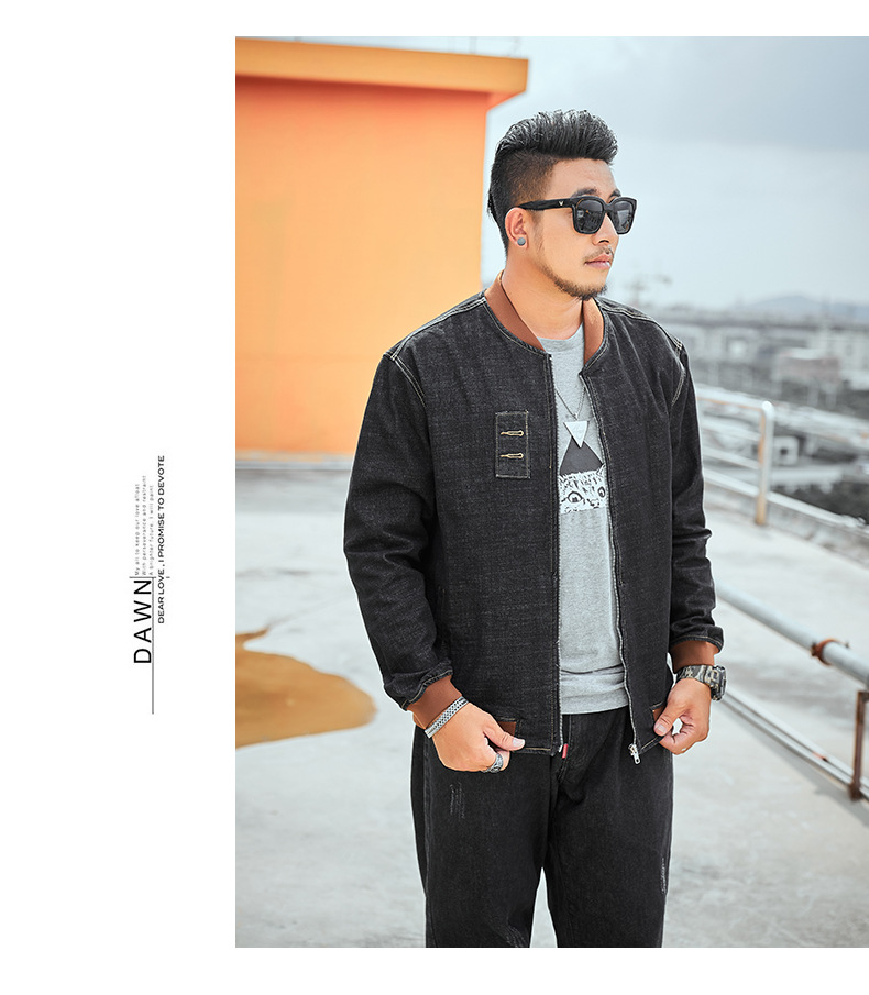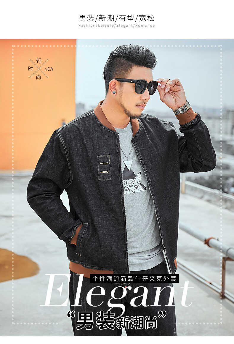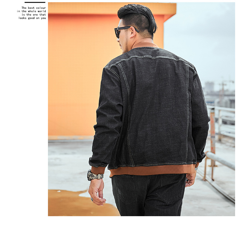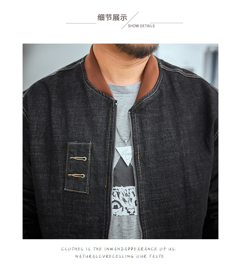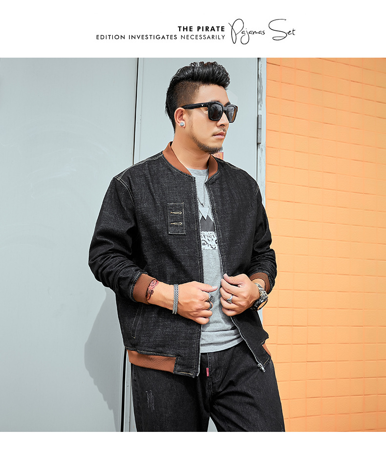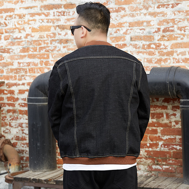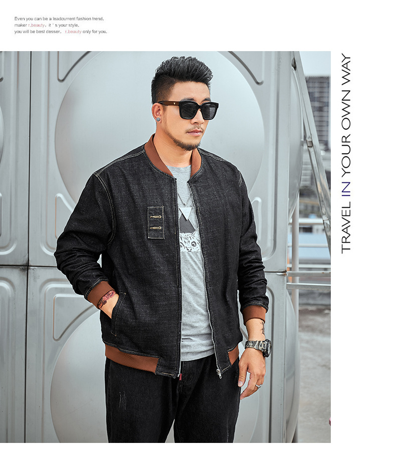 플러스 사이즈 남자의 느슨한 데님 재킷 플러스 무게 플러스 스트레치 뚱뚱한 야구 세트 한국 스타일 뚱뚱한 재킷 유행 최고스토어 가기