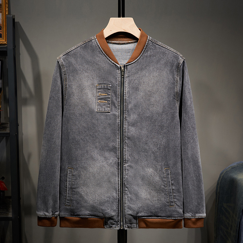 플러스 사이즈 남자의 느슨한 데님 재킷 플러스 무게 플러스 스트레치 뚱뚱한 야구 세트 한국 스타일 뚱뚱한 재킷 유행 최고