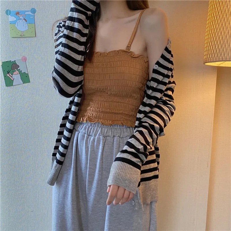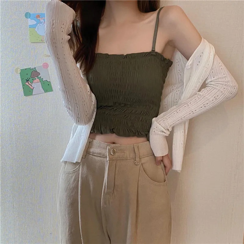 시드니 같은 스타일 캐미솔 여성용 조절 가능한 어깨 벨트 한 주름 아름다운 뒤로 감싼 가슴 튜브 가슴 패드가있는 짧은 스타일스토어 가기