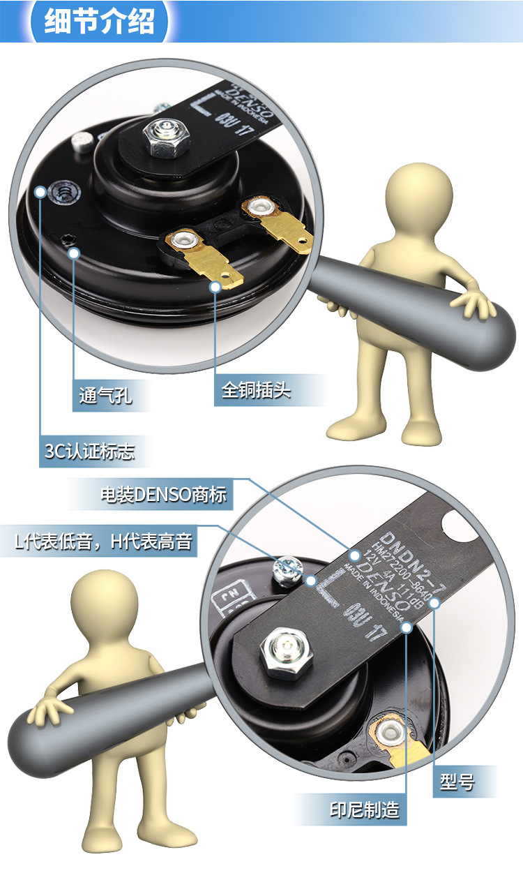 DENSO 자동차 경적 경적 경적 경적 분지 타입 듀얼 톤 12V 슈퍼 사운드 방수 범용 수정 듀얼 플러그 정품스토어 가기