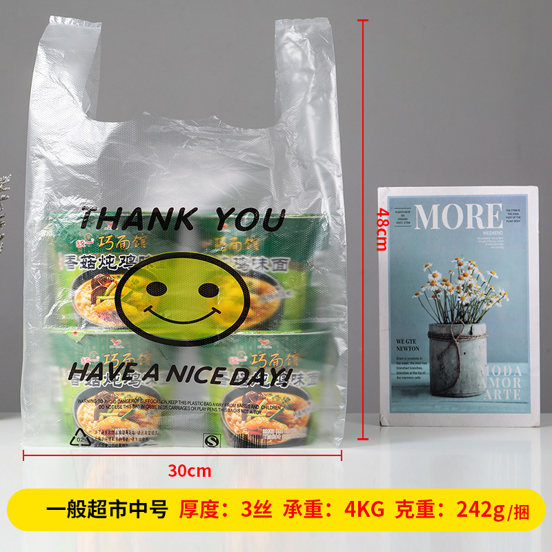 투명한 웃는 비닐 봉지 휴대용 Stall 상업용 맞춤형 로고 슈퍼마켓 쇼핑 식품 학년 두꺼운 가방