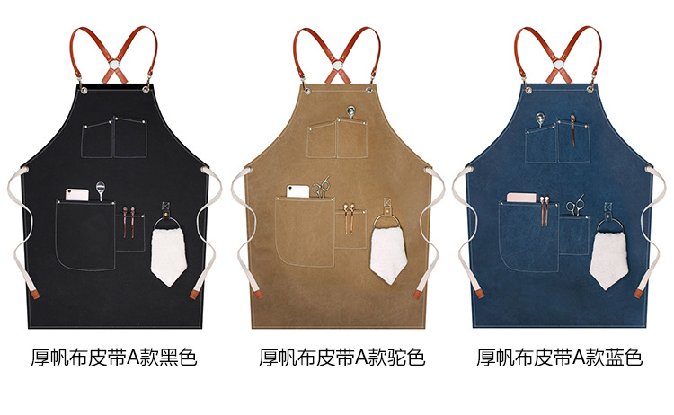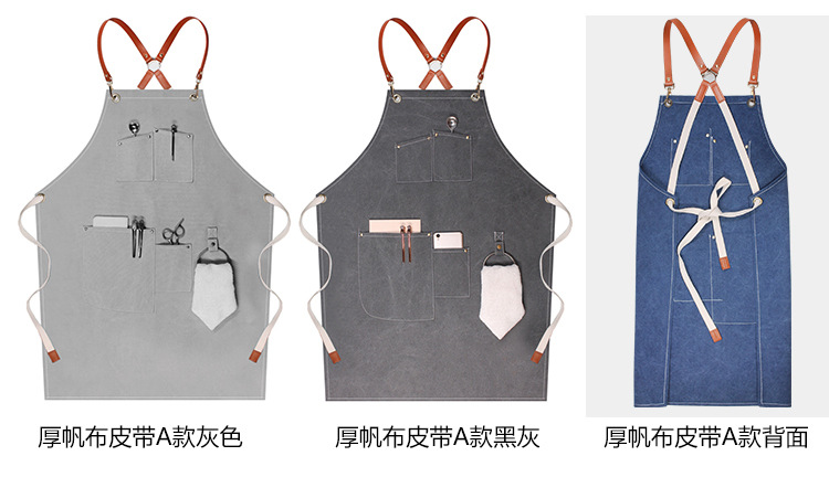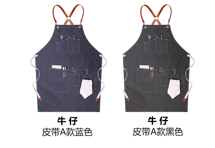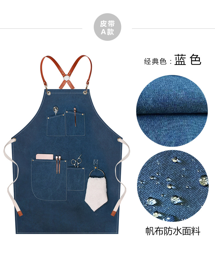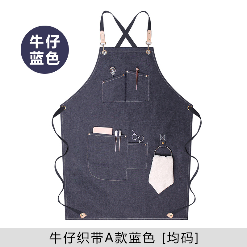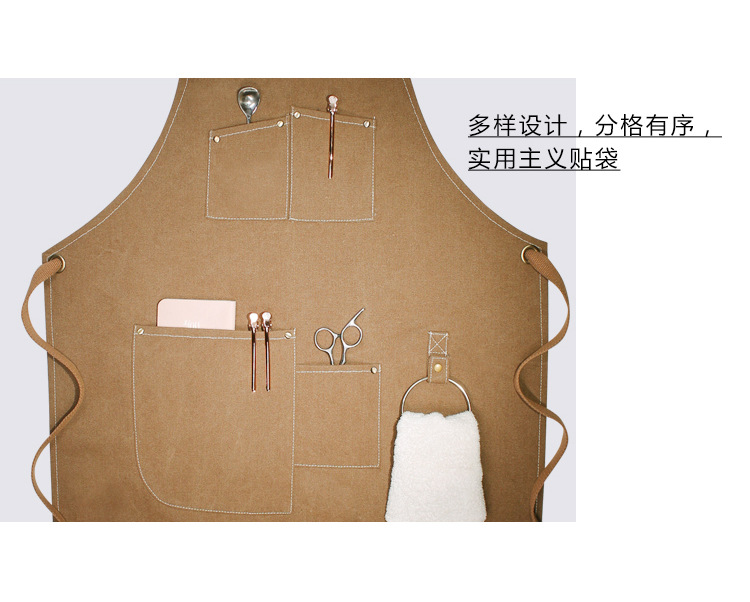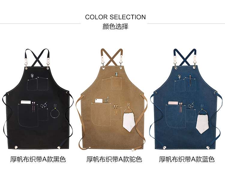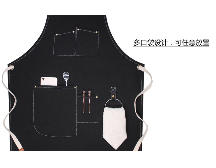 캔버스 앞치마 사용자 정의 로고 인쇄 플로리스트 바리 스타 우유 차 가게 레스토랑 패션 데님 작업 앞치마