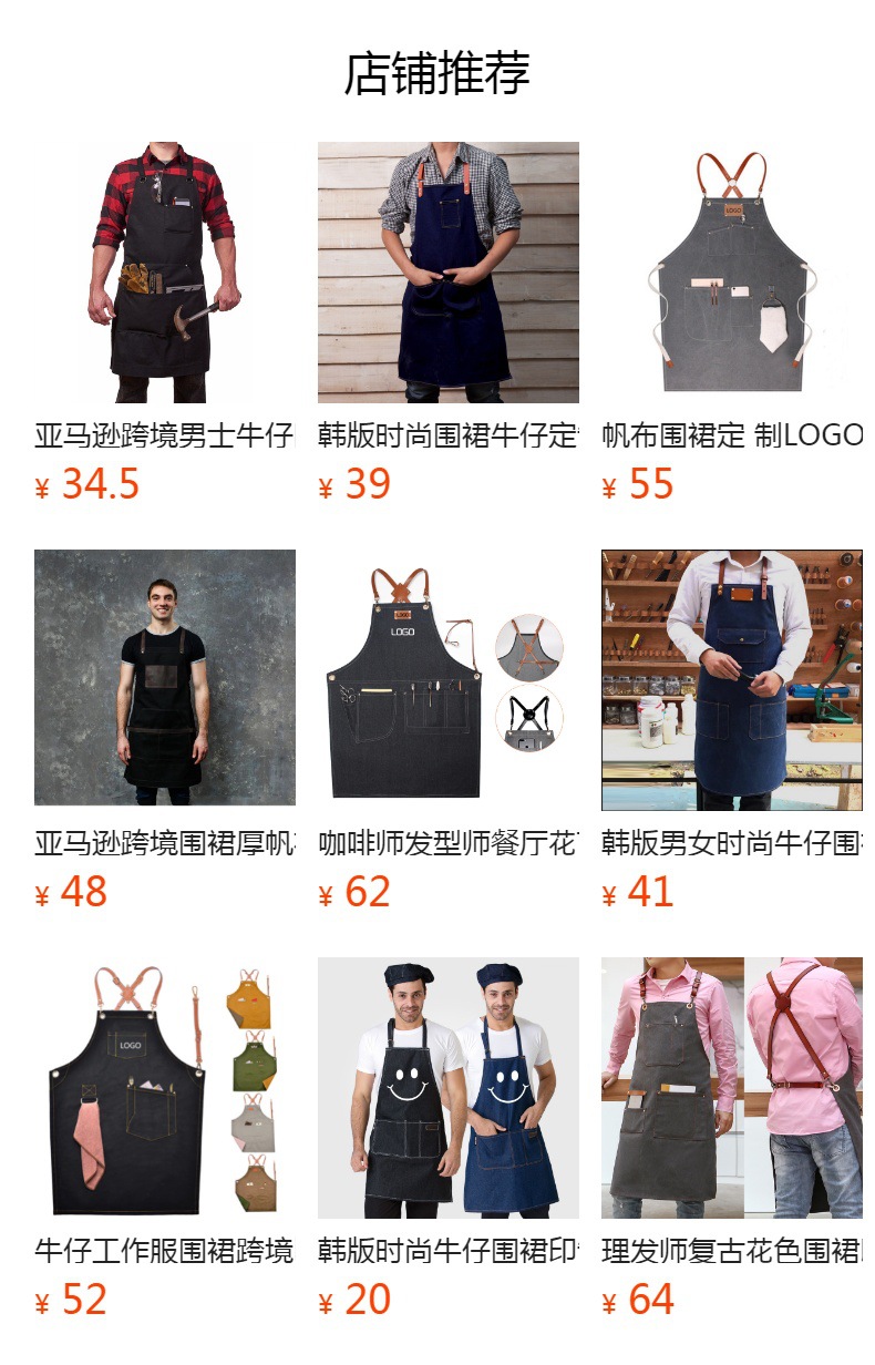 캔버스 앞치마 사용자 정의 로고 인쇄 플로리스트 바리 스타 우유 차 가게 레스토랑 패션 데님 작업 앞치마스토어 가기