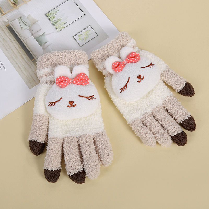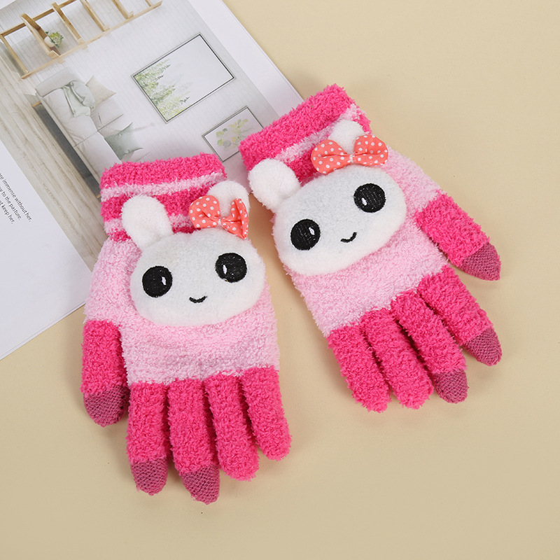 가을과 겨울에 장갑을 타는 어린이 학생 니트 기모 여성 만화 자전거 냉장 봉제 터치 스크린