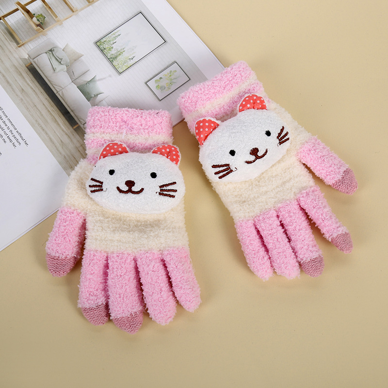 가을과 겨울에 장갑을 타는 어린이 학생 니트 기모 여성 만화 자전거 냉장 봉제 터치 스크린스토어 가기