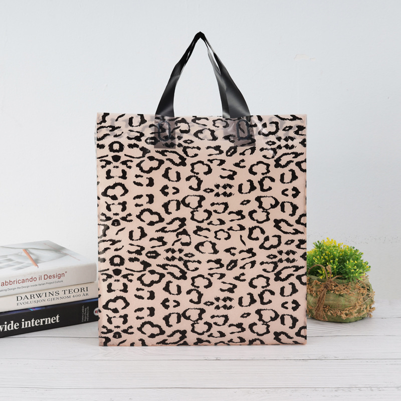 재고 도매 레오파드 무늬 플라스틱 손 가방 옷 바지 휴대용 페 포장 가방 슬링 백 도매스토어 가기