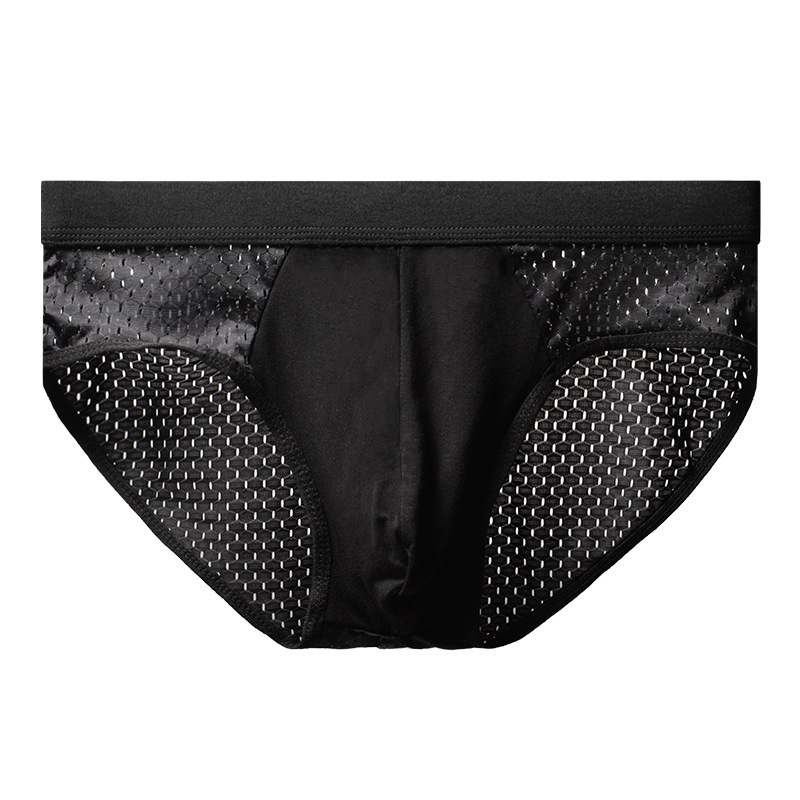 팬티 남성 속옷 아이스 실크 울트라 씬 로우 웨이스트 메쉬 통기성 원활한 원피스 속옷 남성용 팬티스토어 가기