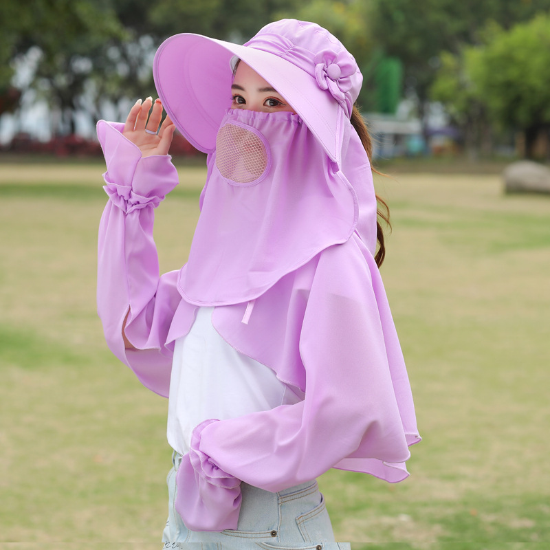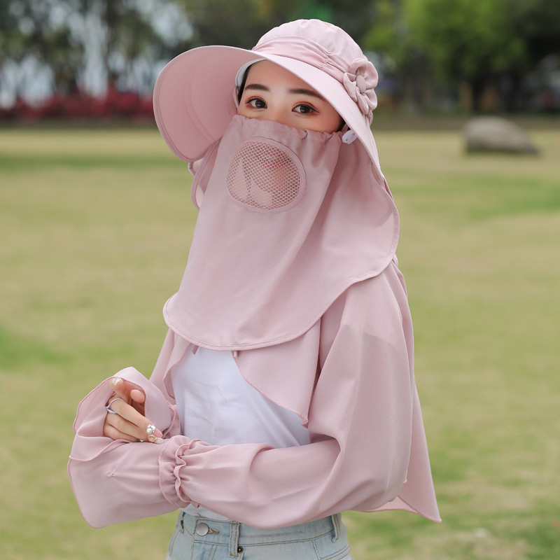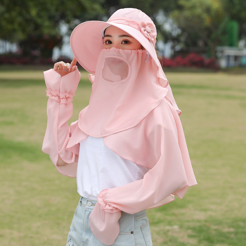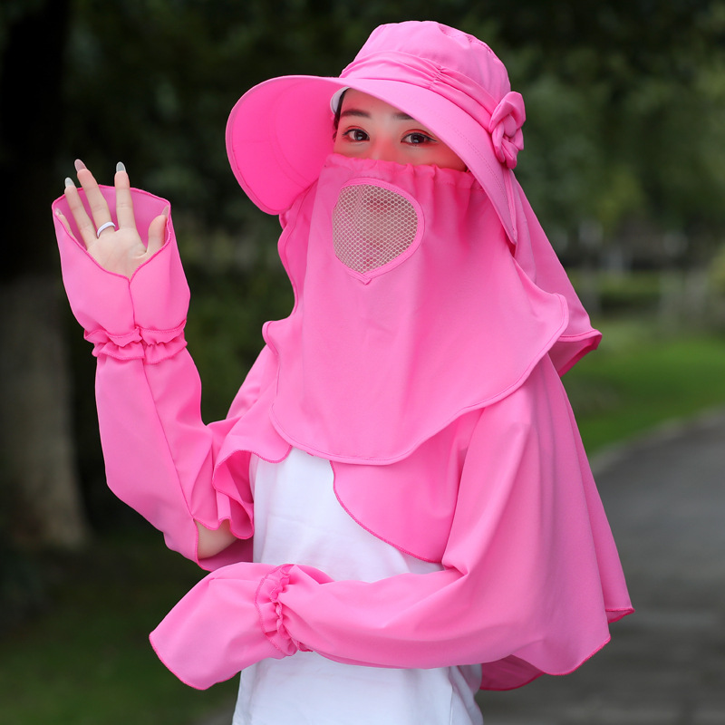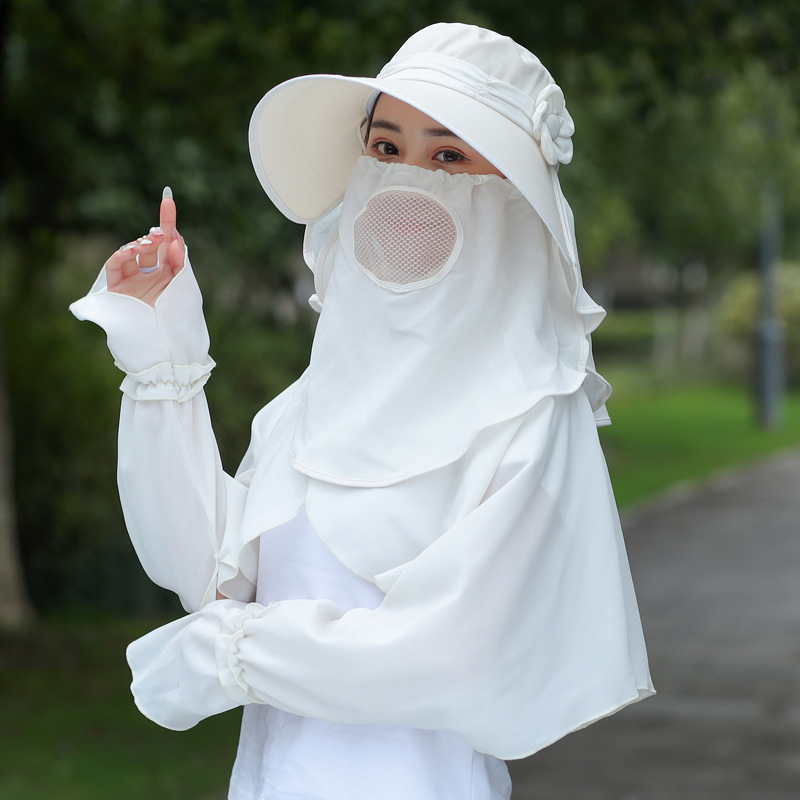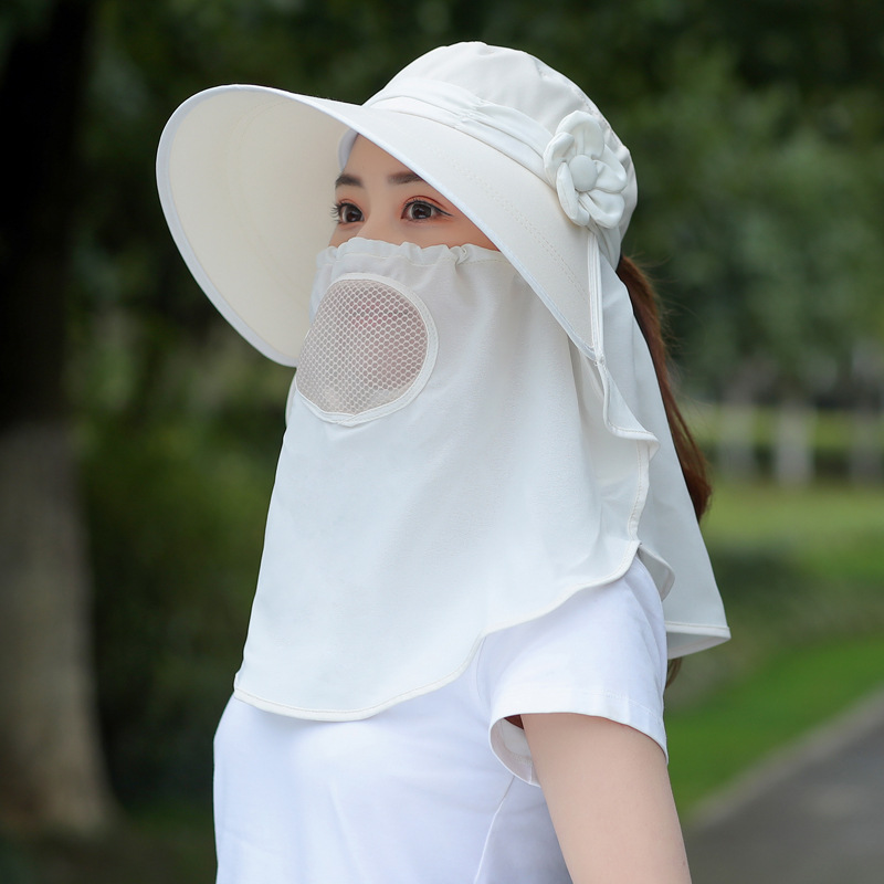 빅 엣지 페이스 커버링 썬 햇 여성용 여름 야외 사이클링 썬 커버링 모자 레이스 숄 슬리브
