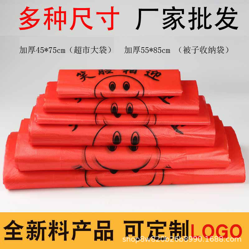 빨간 웃는 플라스틱 슈퍼마켓 쇼핑백 테이크 아웃 포장 가방 과일 비닐 봉투 휴대용 편의 가방 도매 맞춤형스토어 가기