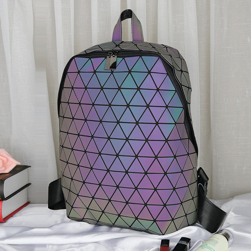더블 숄더 백팩, 기하학적 마름모 무늬, 역삼각형 등산 가방, 삼각형 패널 마름모 백팩, 통근용 경량 변색 책가방