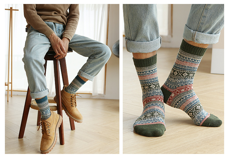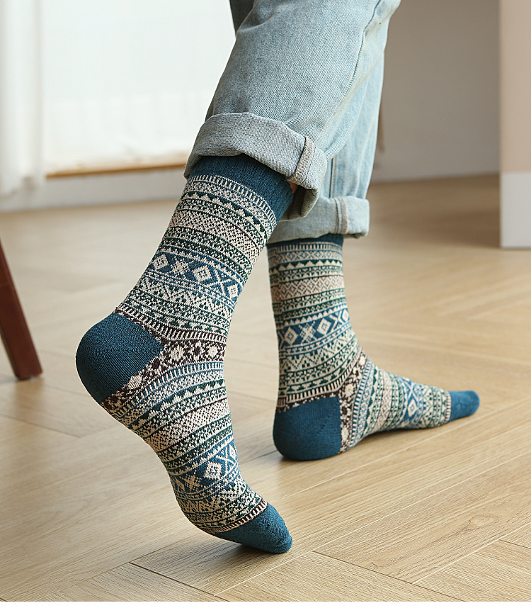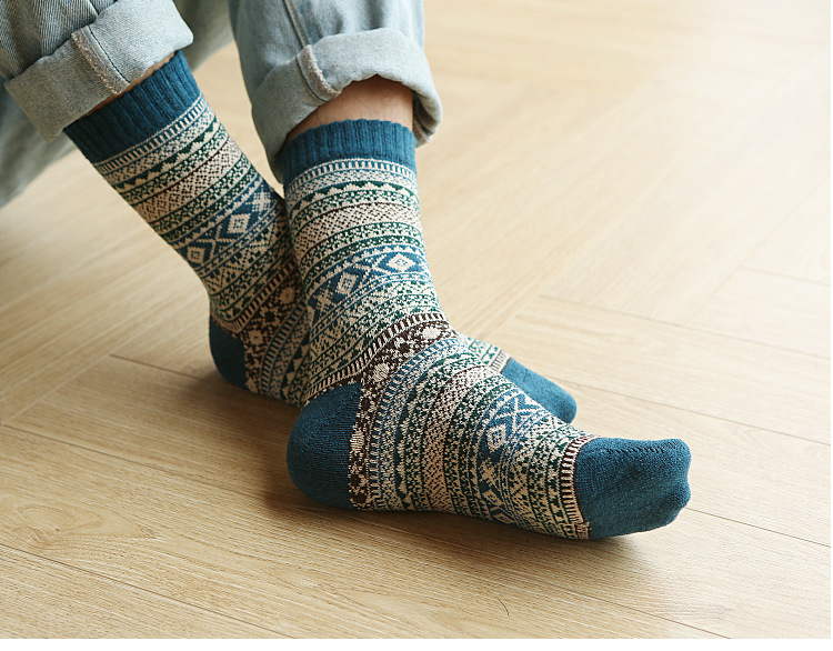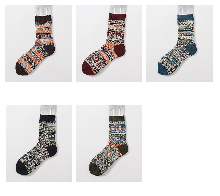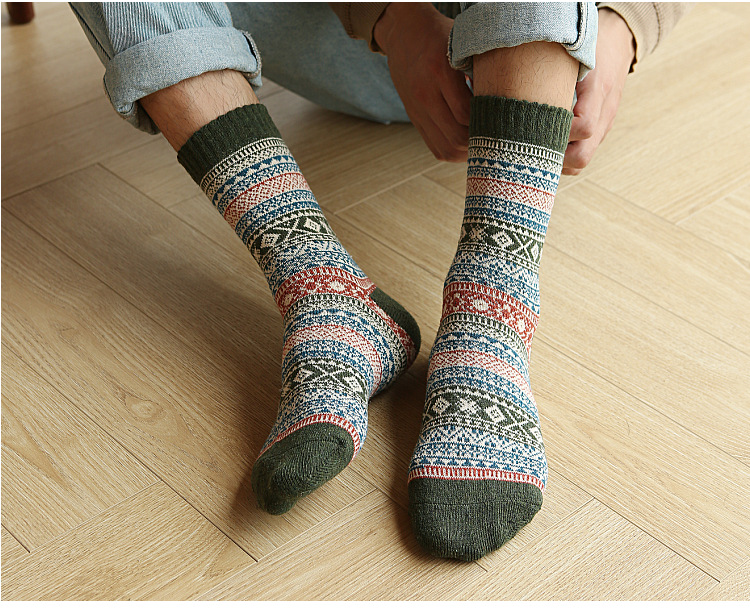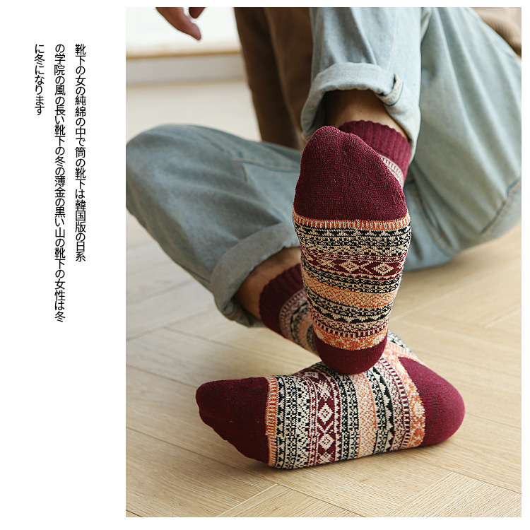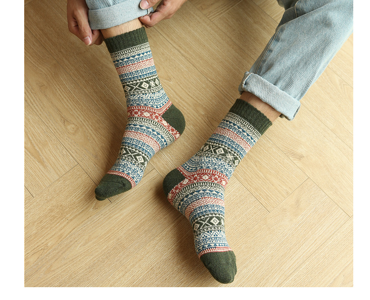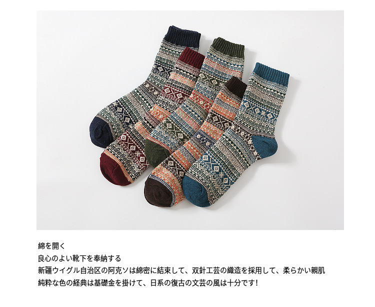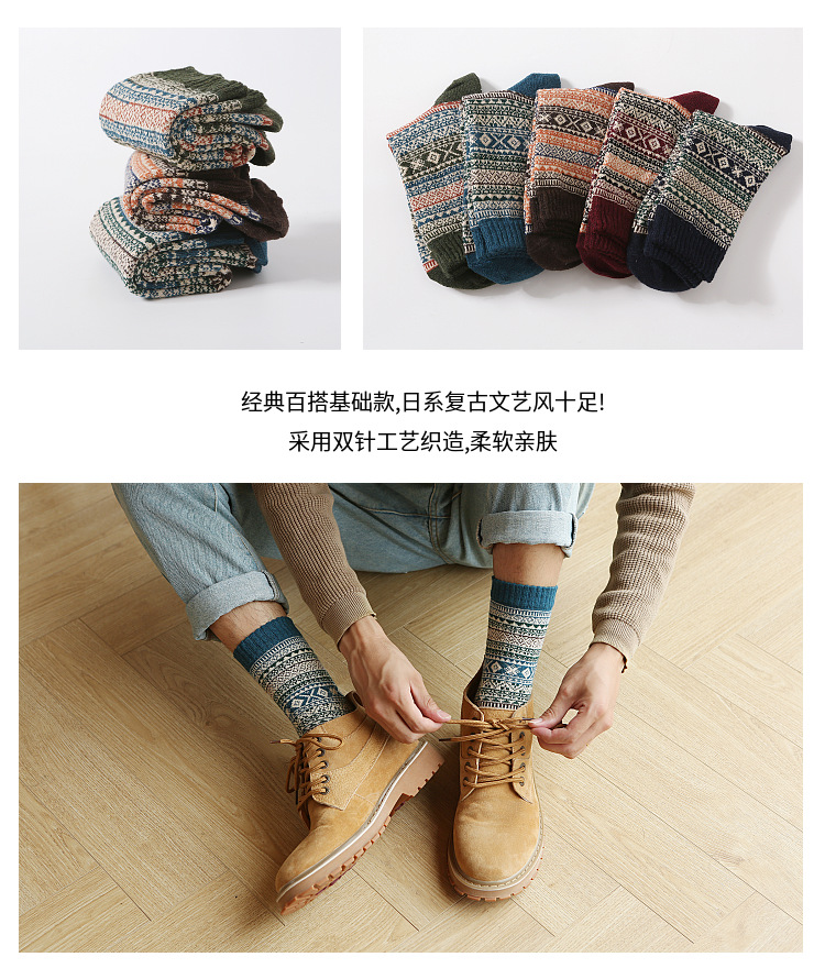 가을과 겨울 두꺼운 따뜻한 양말 남성용 일본 복고풍 민족 스타일 작은 다이아몬드 울 양말 국경 외국 무역 튜브 양말