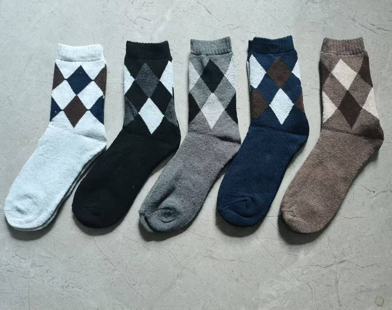 가을과 겨울 두꺼운 따뜻한 양말 남성용 일본 복고풍 민족 스타일 작은 다이아몬드 울 양말 국경 외국 무역 튜브 양말스토어 가기