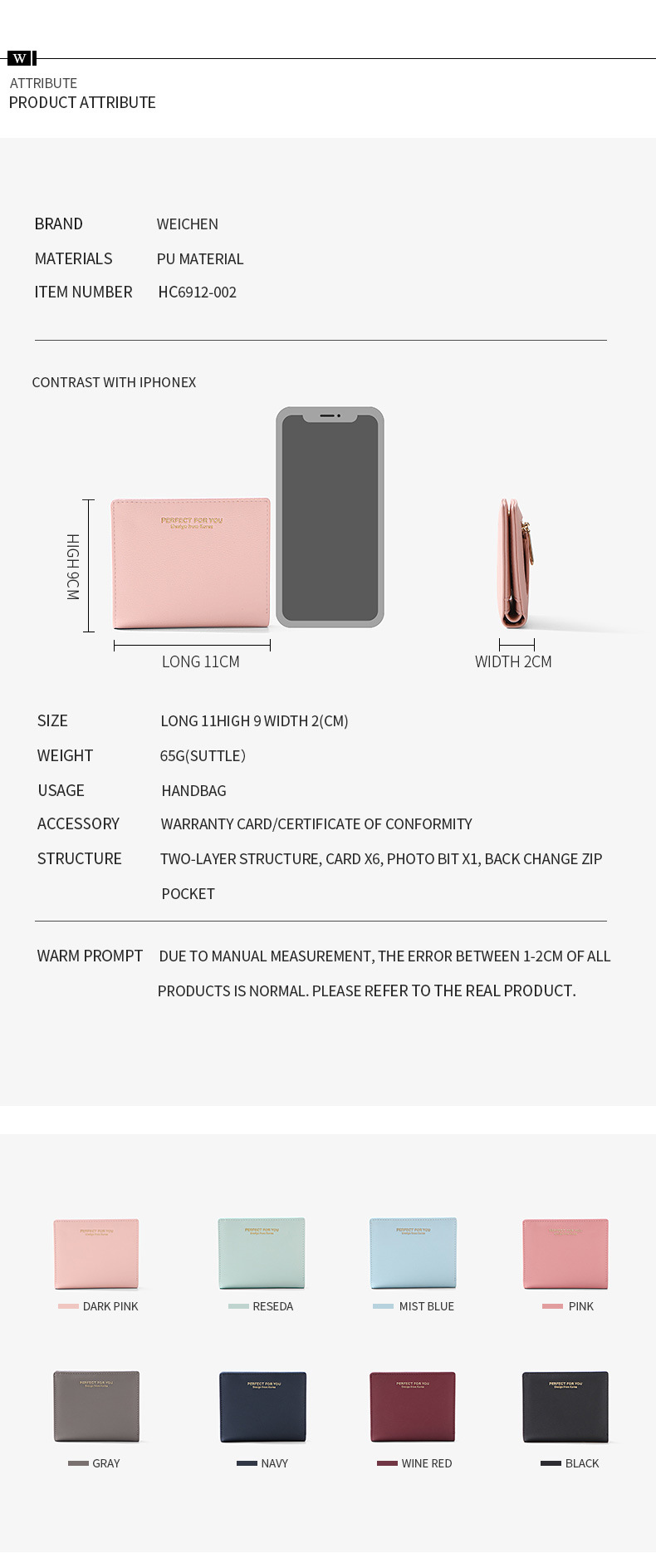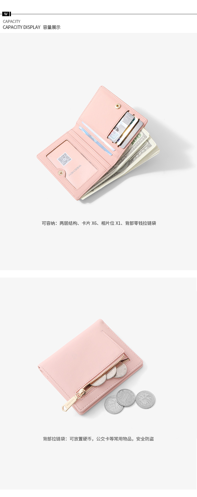 크로스보더 웨이첸 신상 여성 지갑 짧은 스타일 PU 동전 지갑 여성 카드 지갑 한국 스타일 지퍼 클러치백